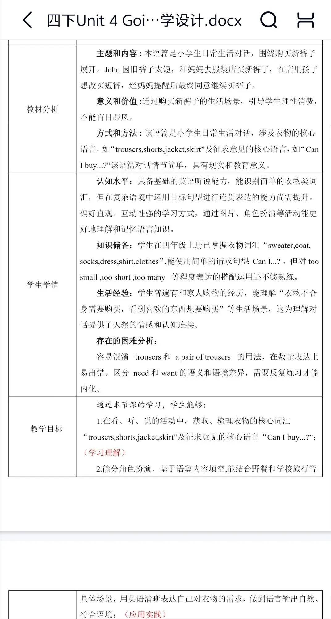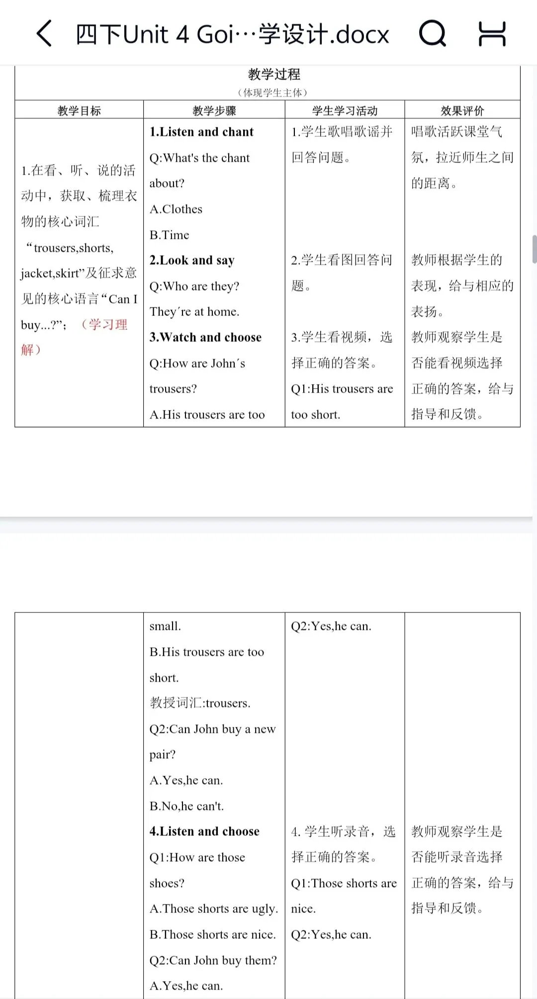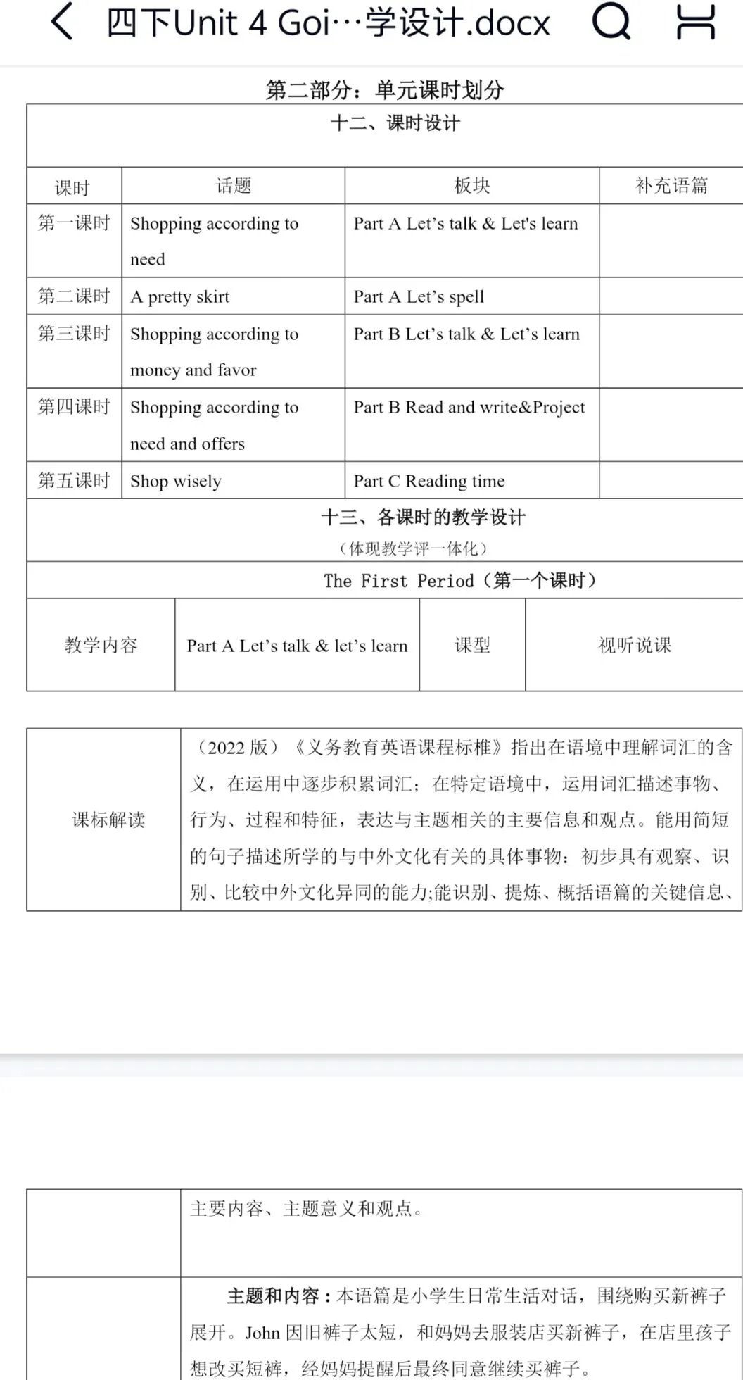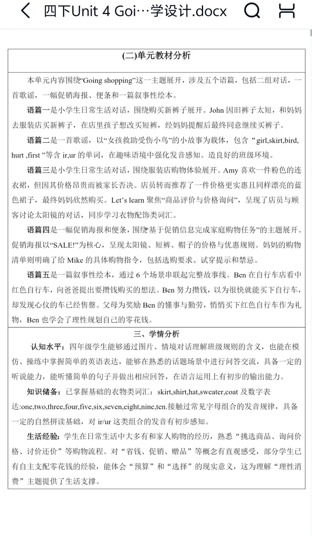 Unit 4 Going shopping大单元整体教学设计+分课时教案(包含分层作业设计、教学反思)