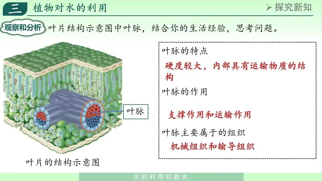 本章节位于七年级下册第三单元第二章第一节《水的利用与散失》。本节内容围绕植物对水的吸收、运输、利用和散失展开,是学生在学习植物器官基本结构之后,对植物生命活动进行进一步认识的重要内容。