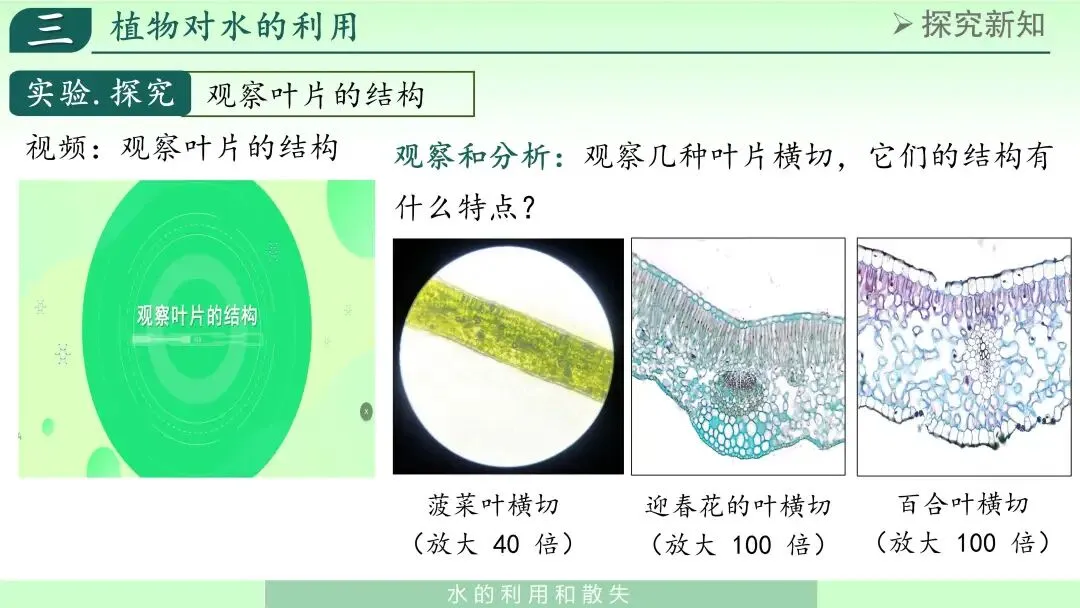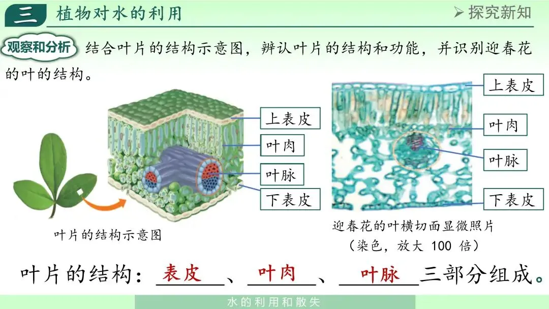 这样,学生对叶片结构有整体认识。