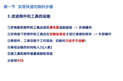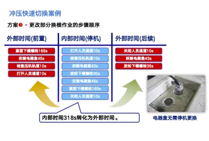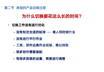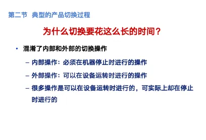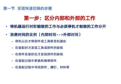 SMED(快速换模),这是设备管理人员在设备大保养必须掌握的一项能力,有部分公司的设备人员还需要参加现场切换的改善,因此这是需要掌握的能力