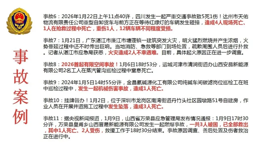 事故8:2026首起有限空间事故!1月6日18时53分,运城河津市清涧街道办山西安昆新能源有限公司2名工人在蒸汽管沟巡检过程中窒息死亡。