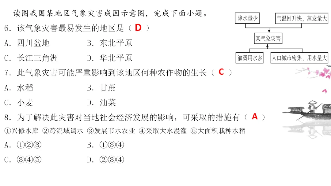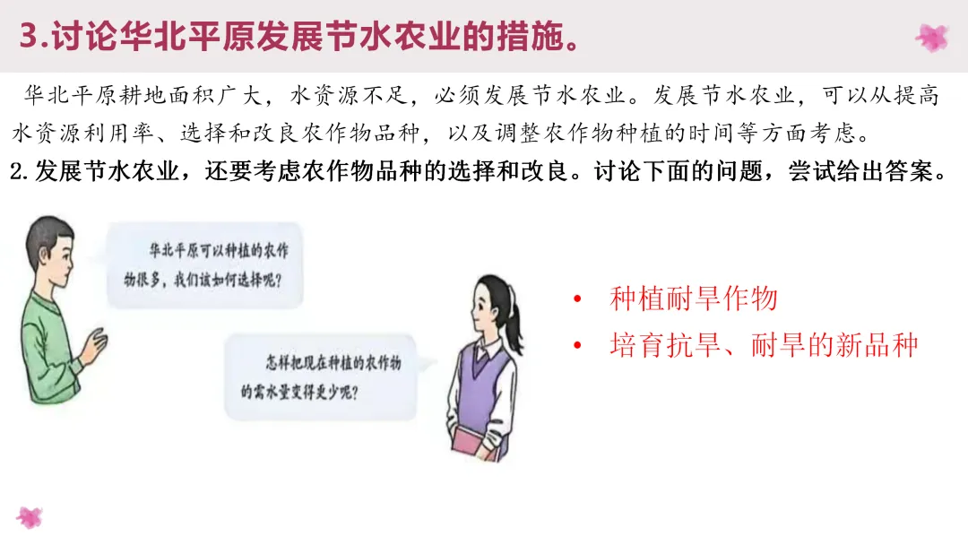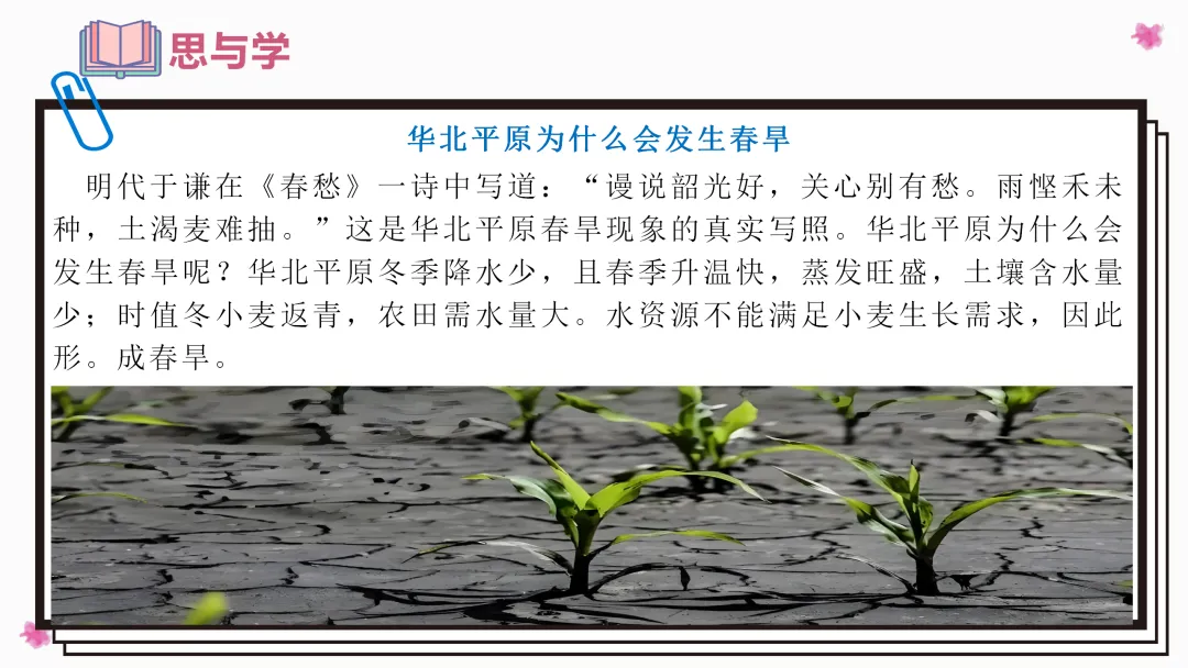 2. 理解华北平原春旱的原因,了解人们的应对措施。