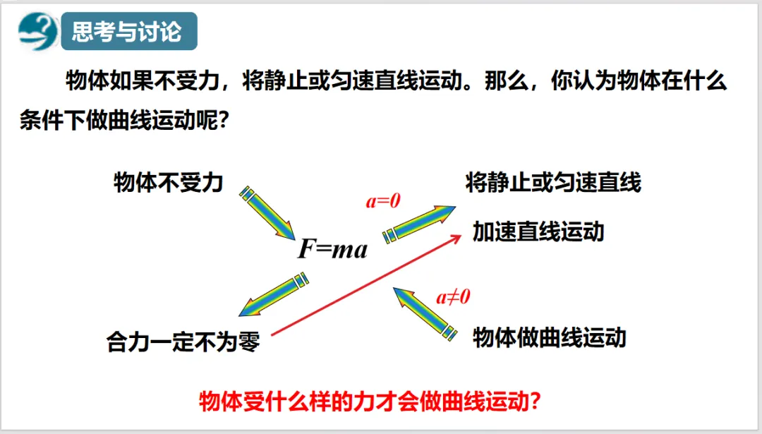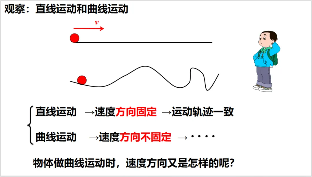 在新课引入环节,研究直线运动的思路和方法是什么没有能够展开讲,如果讲这个内容,也许对本节的授课会有更好的效果。另外直线运动和曲线运动之间的区别联系也不够深入的研究的。学生缺乏一定实验观察能力,原因在于没有能够做好引导,降低问题的难度,导致学生观察动图的时候,不知道看哪里。曲线运动的速度方向和做曲线运动的条件,没有展开讲解变速与匀速的曲线运动的问题,我觉得还是要有一定的涉及比较好。