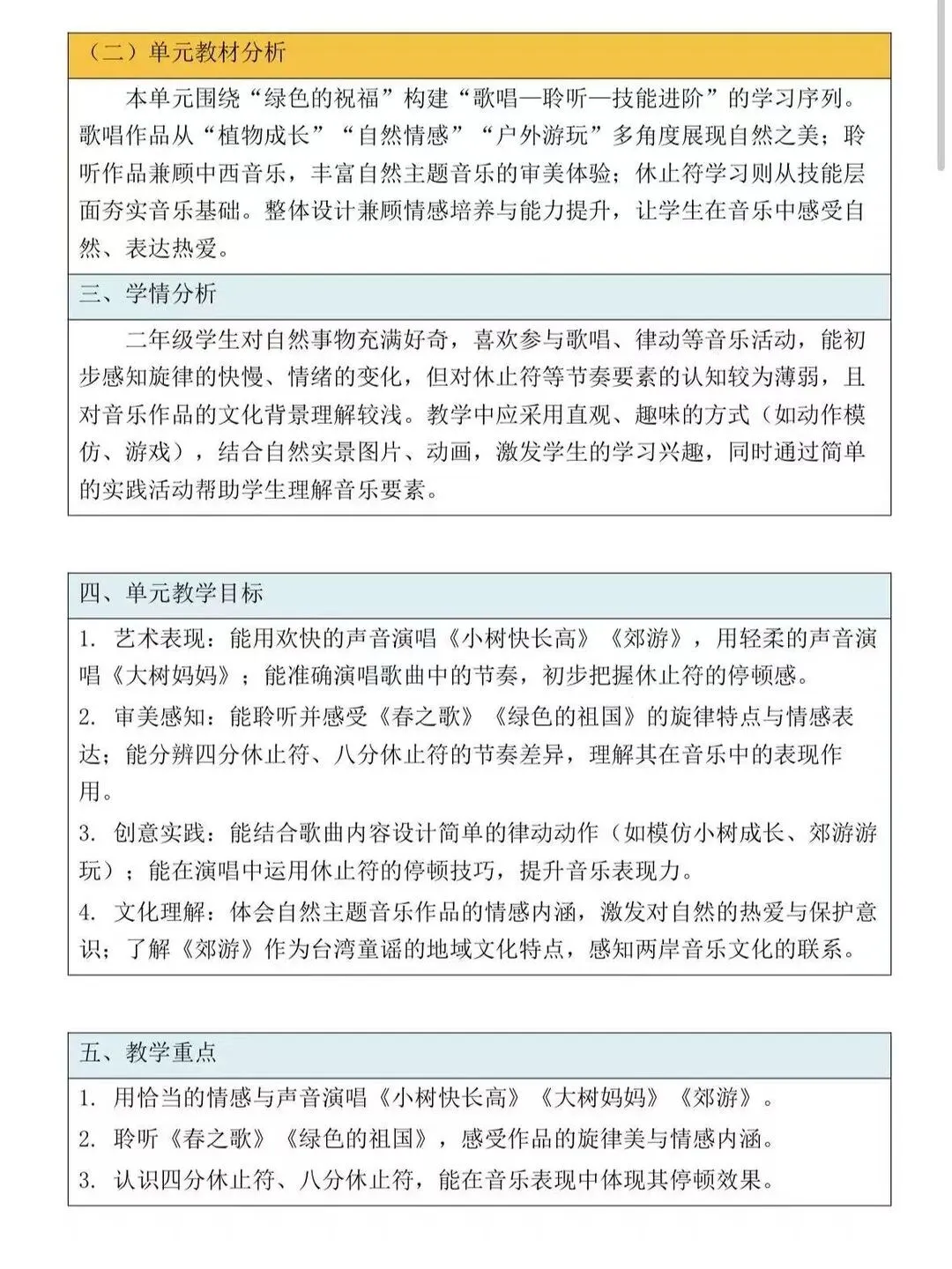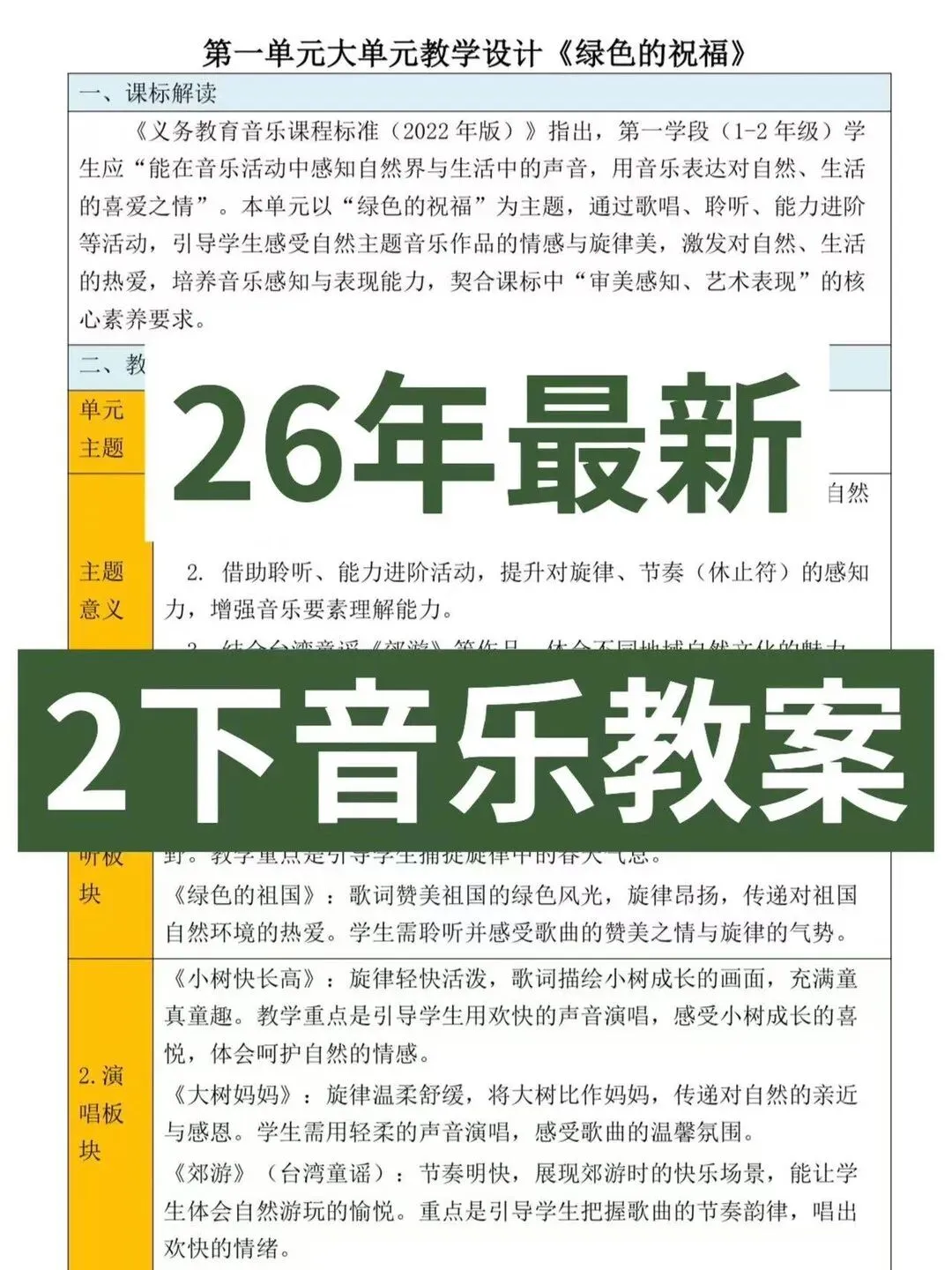 ️ 26年最新版核心素养教案 ️ 新课标下要求四维目标 ️ 整册都是大单元教学设计 四维目标: 艺术表现、审美感知 创意实践、文化理解 整册都有二次备课内容~