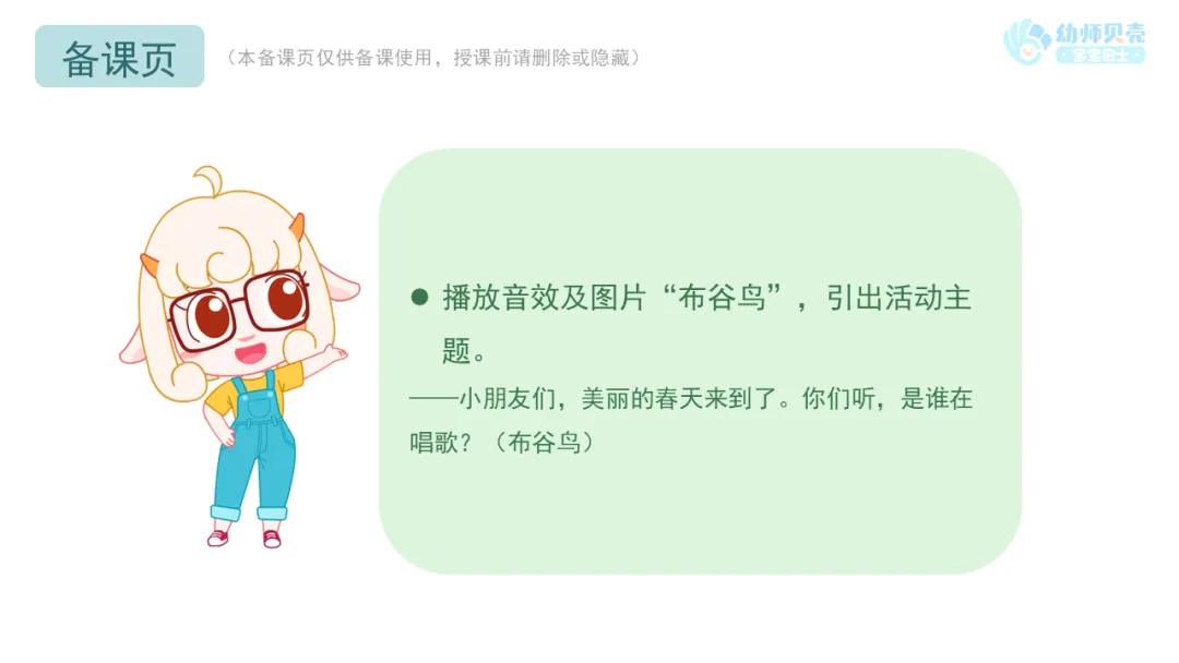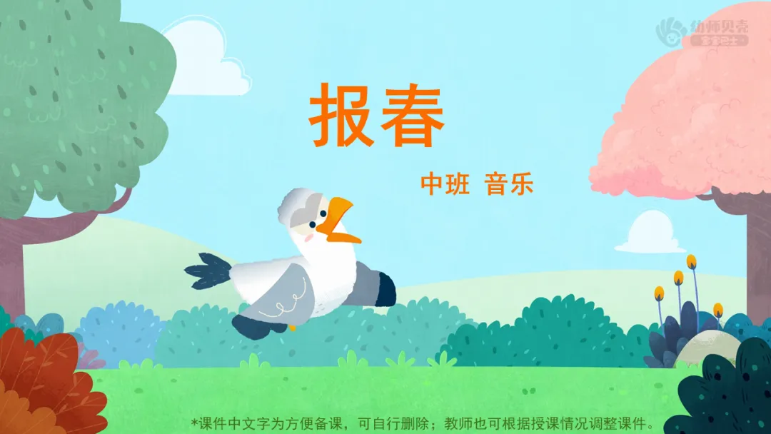 l课件准备:“布谷鸟”音效及图片,《报春》歌曲音频及伴奏;“报春”图片
