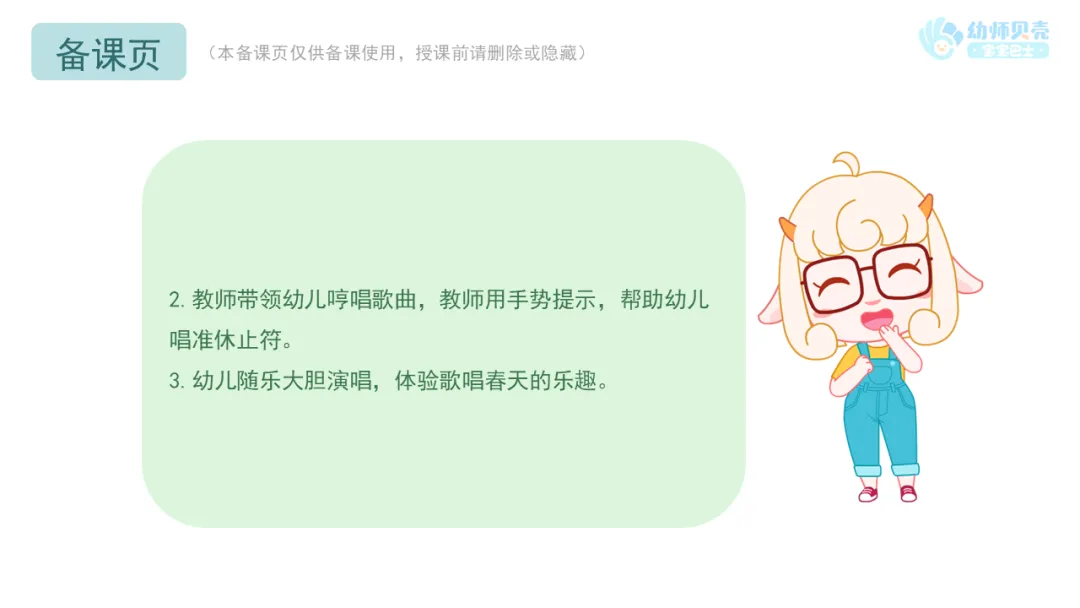 3.幼儿随乐大胆演唱,体验歌唱春天的乐趣。