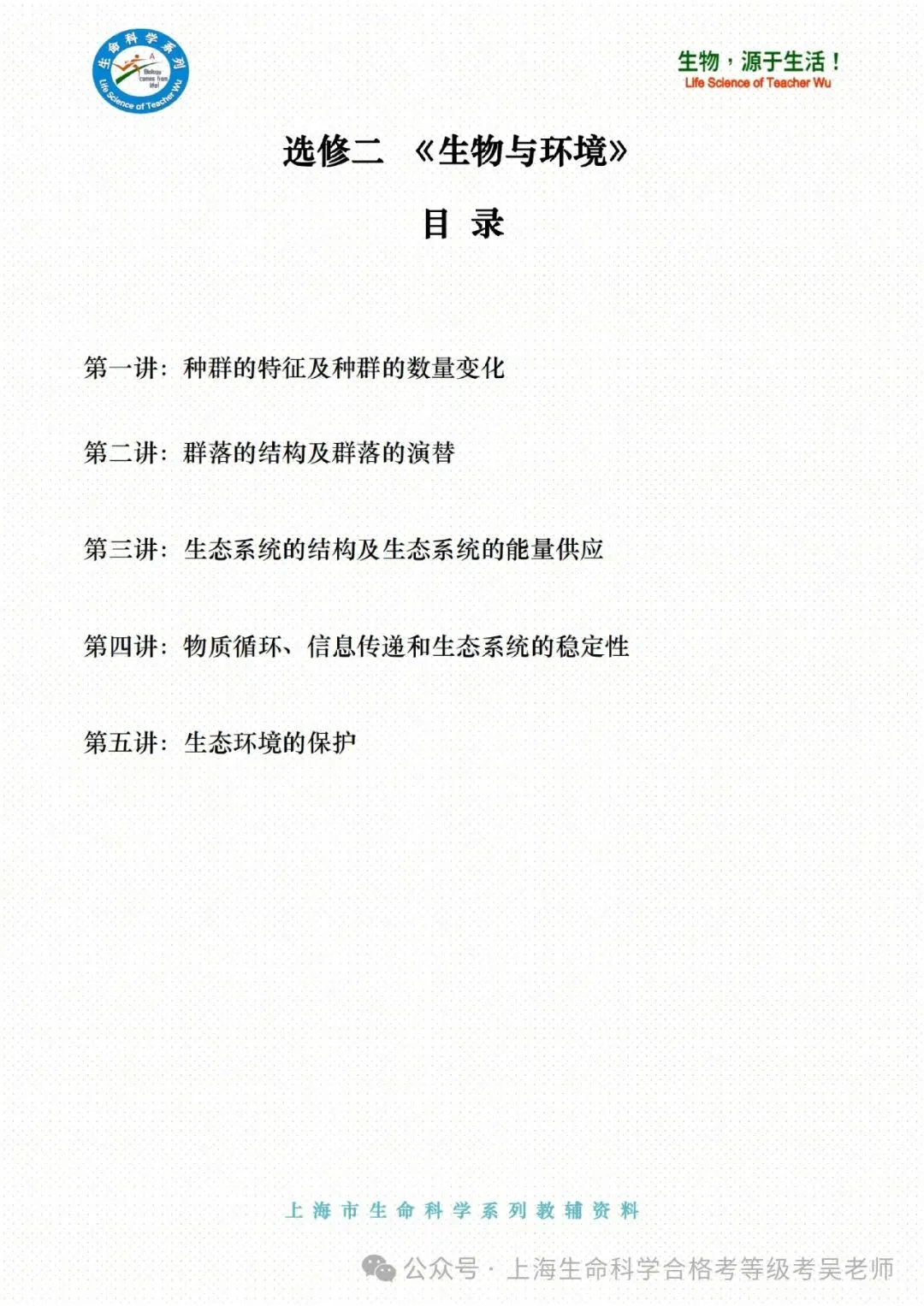 >沪教版高中生物学选择性必修二同步教案《生物与环境》