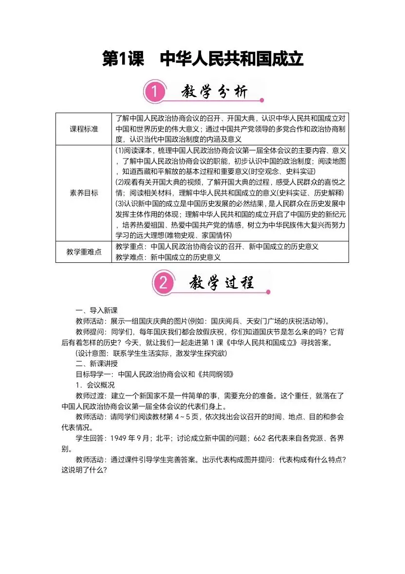 >八下历史教案 第1课《中华人民共和国成立》教学设计(PDF版)