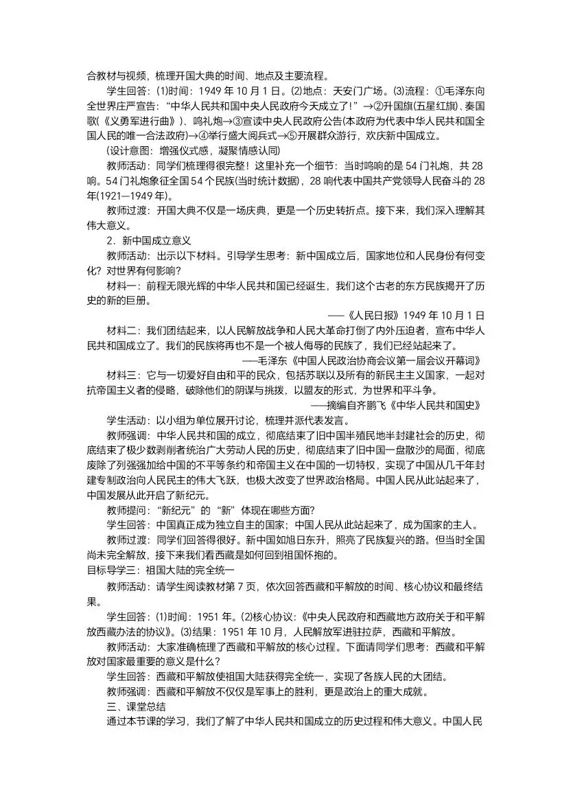 八下历史教案 第1课《中华人民共和国成立》教学设计(PDF版)
