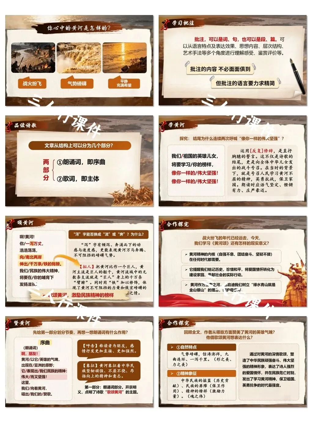 第二单元(家国情怀):《黄河颂》《老山界》《谁是最可爱的人》《土地的誓言》《木兰诗》等课文课件+习作(学习抒情)+主题拓展+专题学习(我的语文生活)