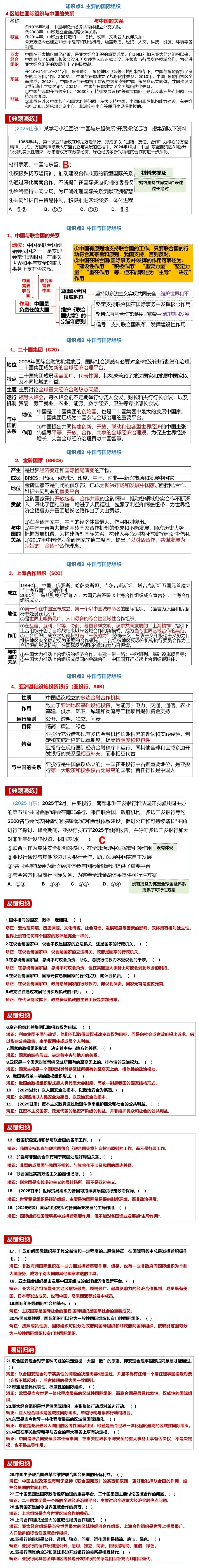 26届高考政治二轮复习课件——专题11 主权国家与国际组织