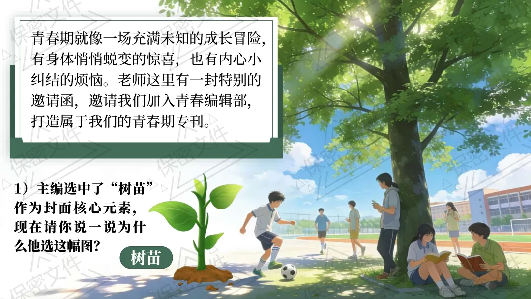 看这样的配色和图片,吸引学生注意那还不是手拿把掐。主编选中“树苗”作为封面核心元素,学生思考寓意(蓬勃生长、充满希望),并补充自己的创意图文。这一环节既激发想象力,又自然引出青春期的生理心理变化主题,为整堂课搭建连贯的活动框架。再来看目标设计: