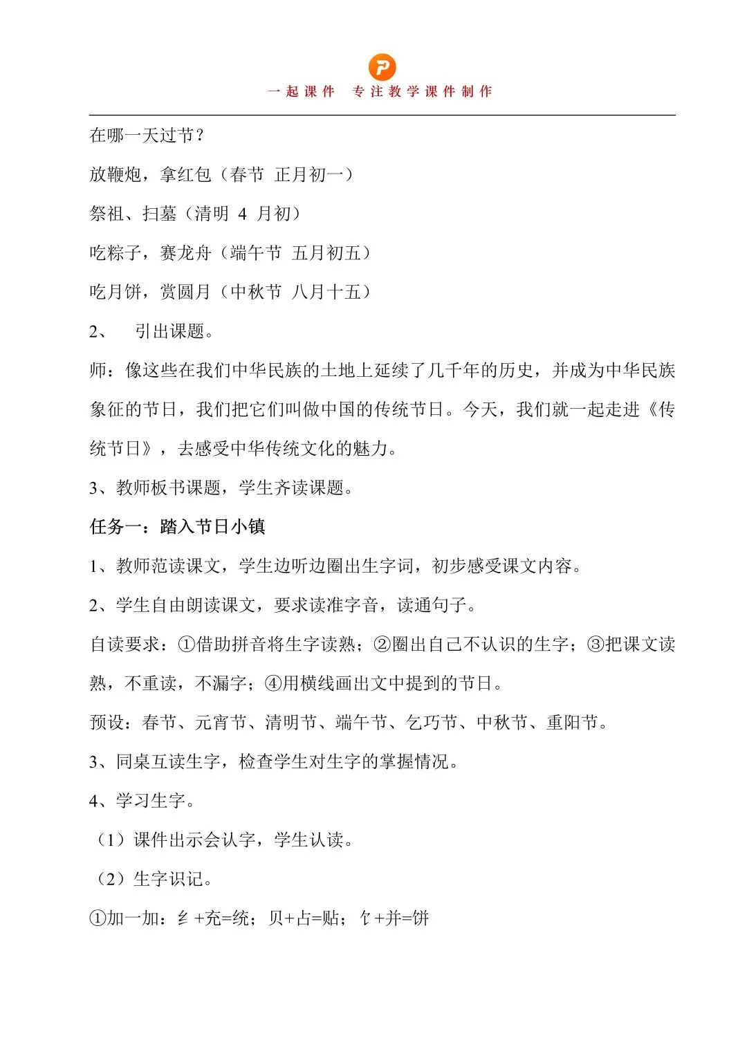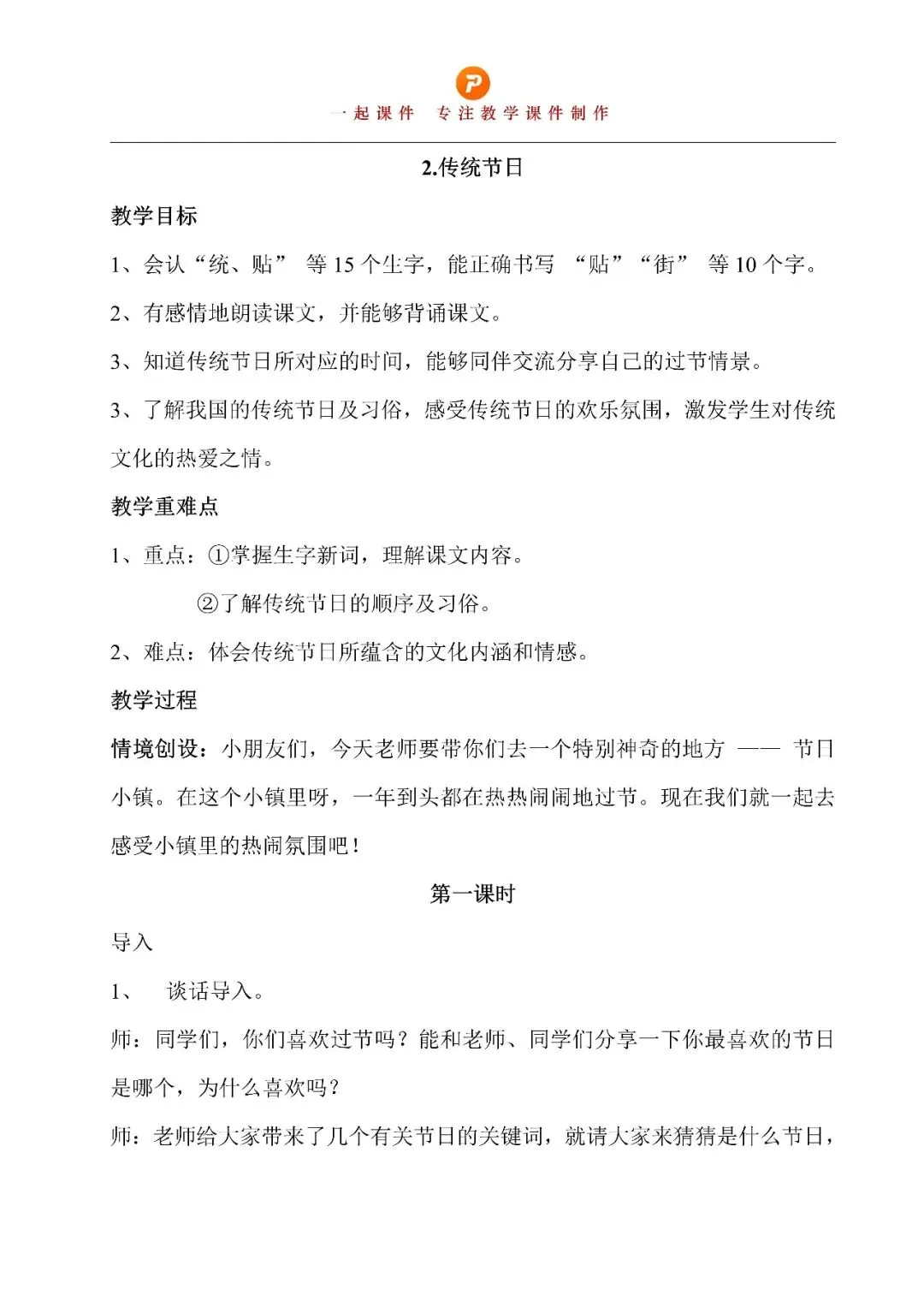 二下第三单元《传统节日》 | 教学课件+教案+逐字稿