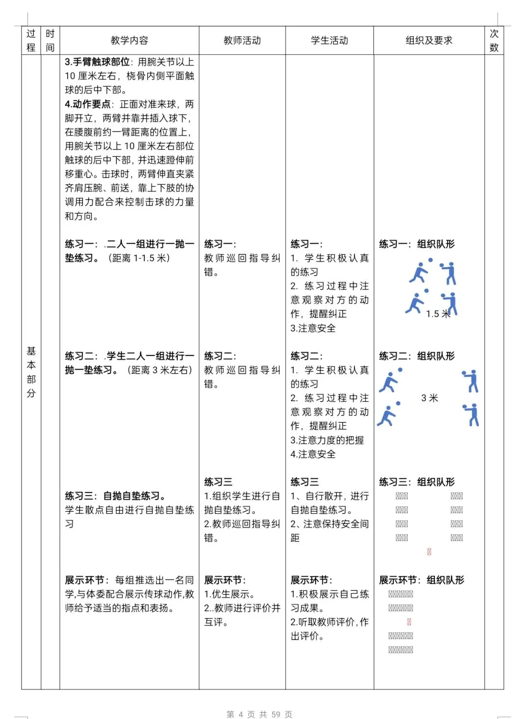 - 技能评价:传、垫、发、扣等技术达标。