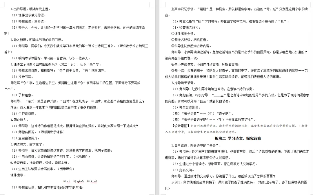 【语文教案课件】小学科学四年级下册文本配套教案课件(含反思)《第1课 古诗词三首》