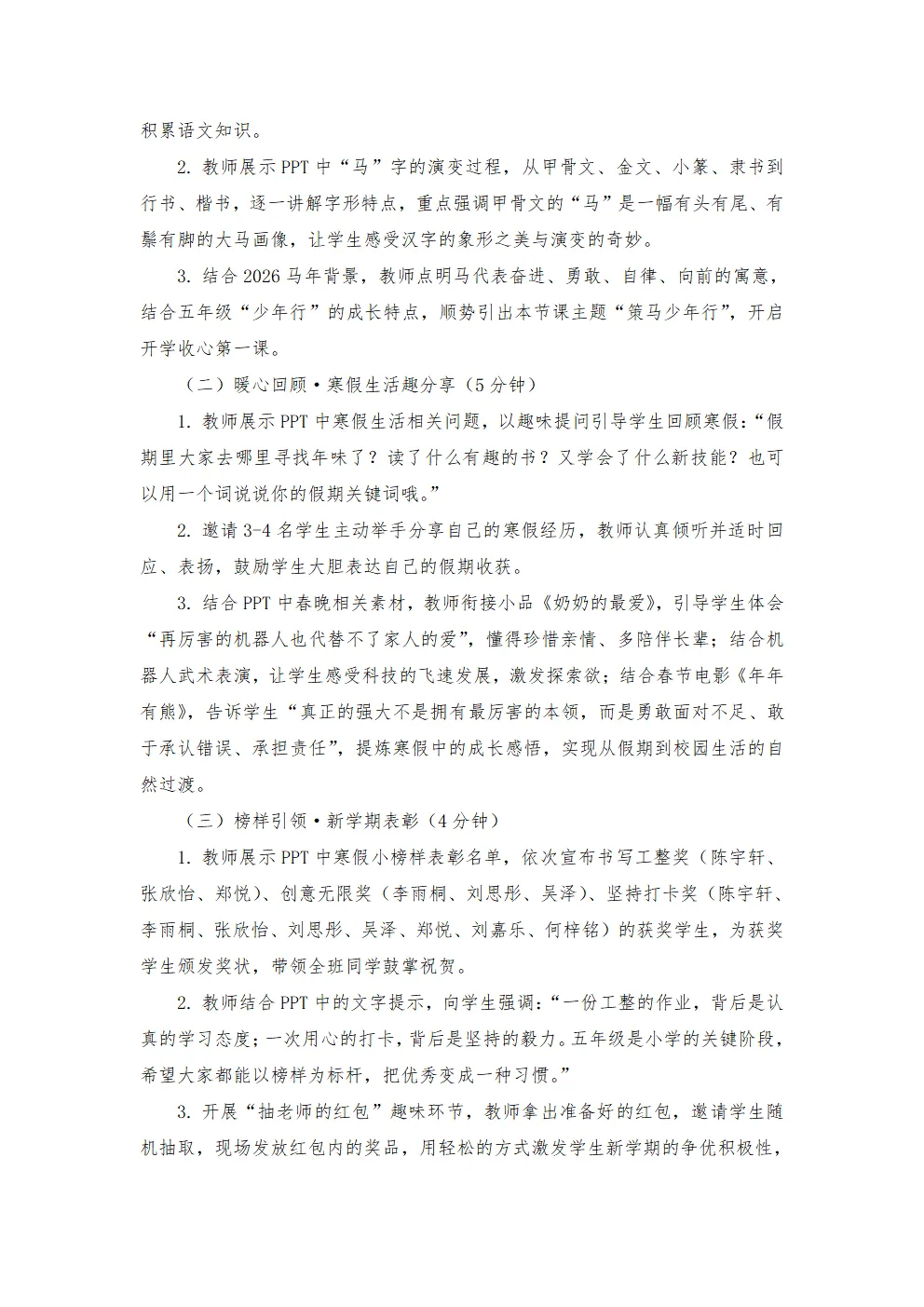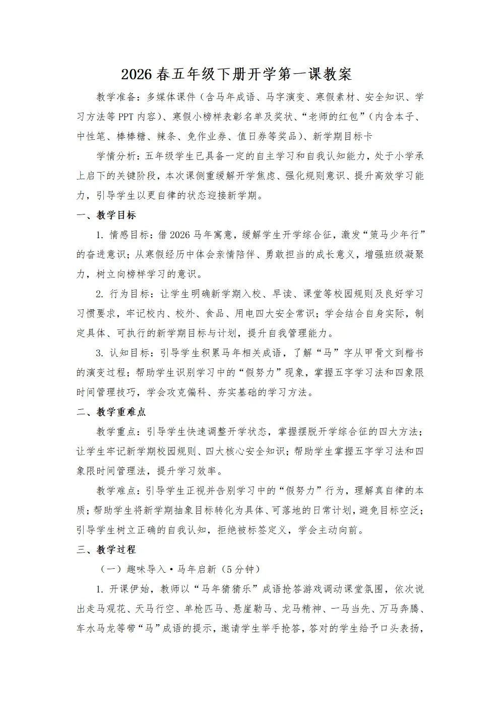 为了方便广大教师备课和日常教学需要及各位家长辅导孩子学习,本人紧紧围绕着新版教材,从编写理念、指导原则、教材内容的选排等方面,精心整理了2026春小学语文五年级开学第一课课件及发言稿