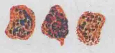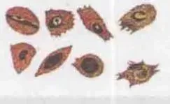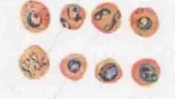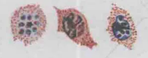 形状 | 很少呈阿米巴圆形,空泡不显著 | 阿米巴样,空泡明显,胞质增多,形状不规则,伪足伸出 | 袋状非阿米巴样,空泡小或无 可呈大环状 | 圆形,空泡不显著 | |