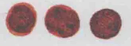 形状 | 新月形,两端较尖 | 圆或卵圆形 沾满涨大RBC | 圆形 | 圆形 | |