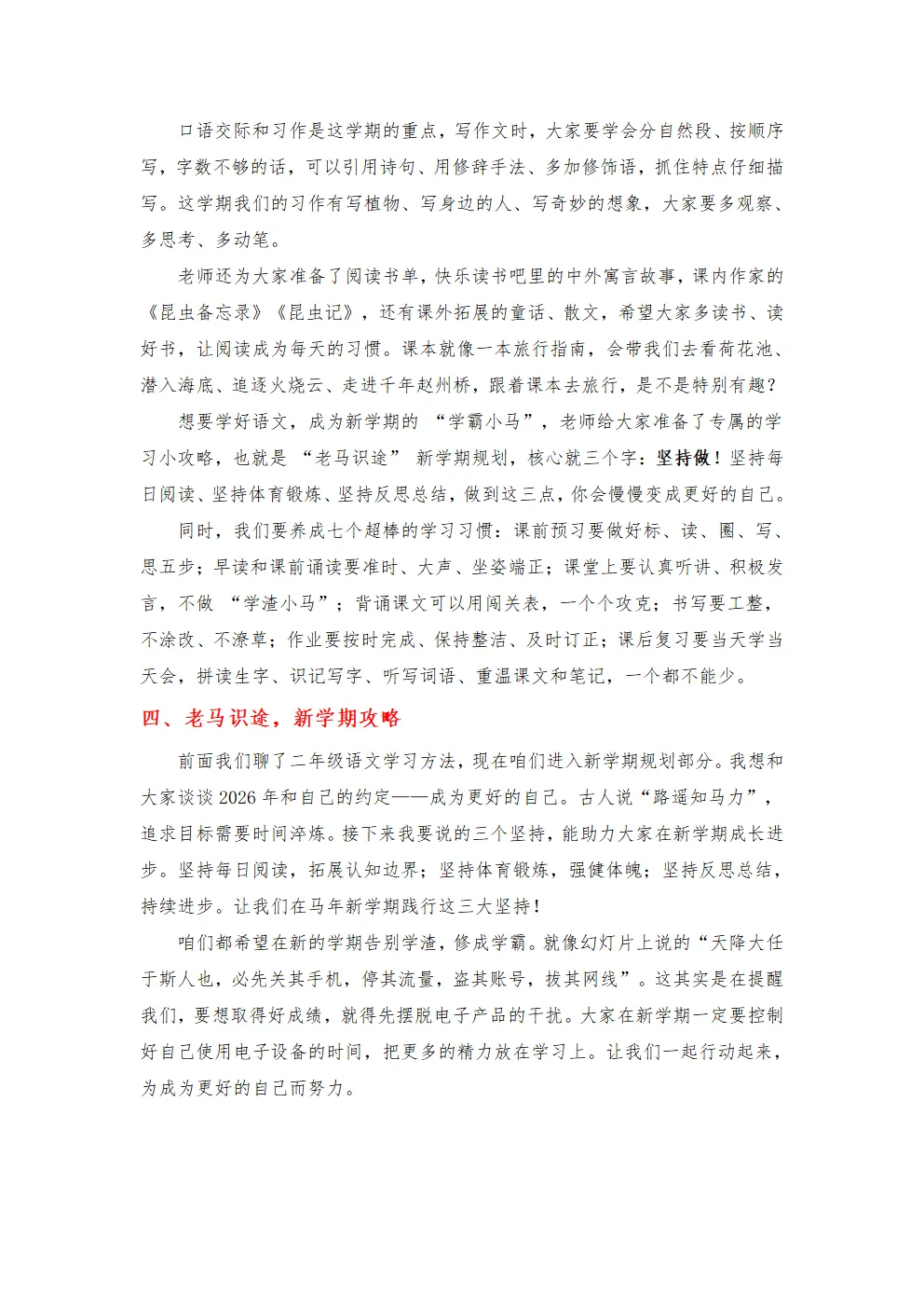2026春小学语文二年级开学第一课课件及发言稿(素材齐全,可直接使用)