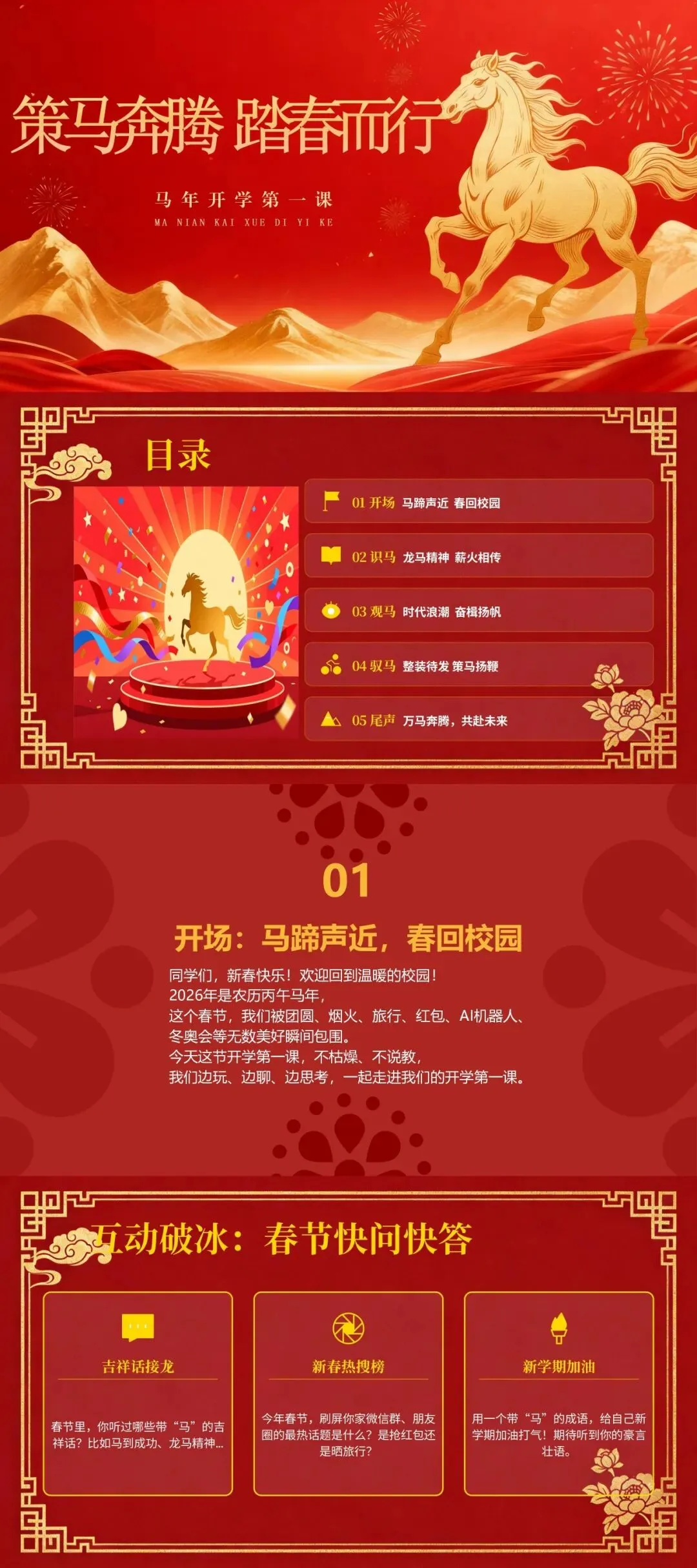 2.2026春季开学第一课:马年奔腾,策马扬鞭,新学期,做自己的光(有讲稿)