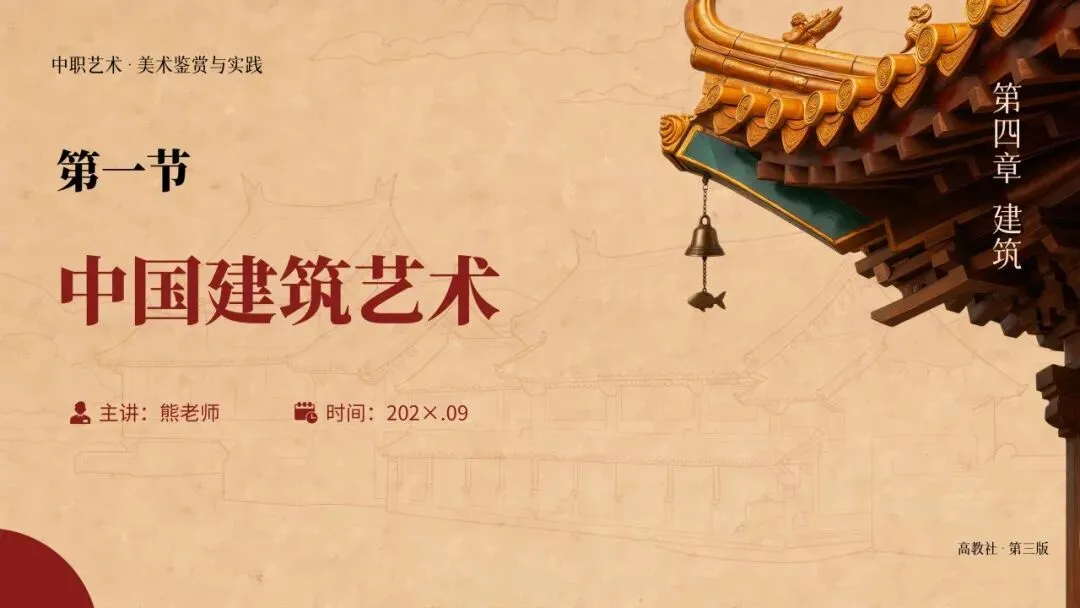 本期更新的课件为统编高教社版中职《艺术(美术鉴赏与实践)》第四章 第一节:中国建筑艺术,共36页。