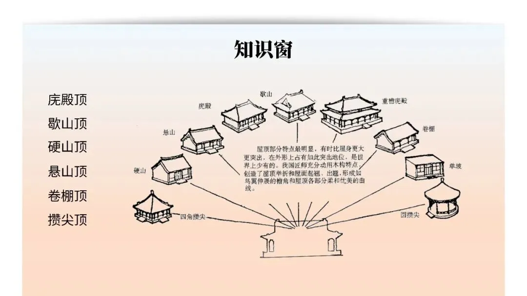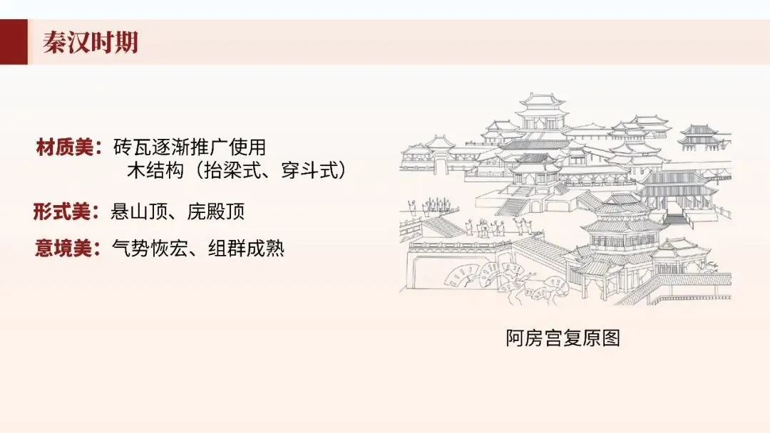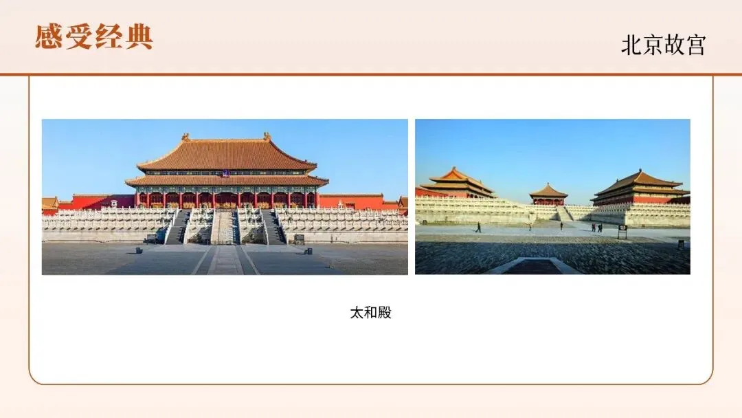 本节赏析宫殿、园林、民居等经典建筑,理解木构架体系、院落布局、屋顶形制等特征。掌握建筑与文化象征的关系,体会"天人合一"的营造理念,认识中国建筑在世界建筑史上的独特地位与美学价值。