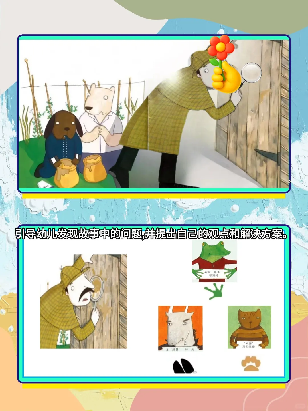 语言活动《蜂蜜失窃谜案》围绕着悬疑展开的细节阅读,形象生动、内容丰富,受孩子喜欢。适
