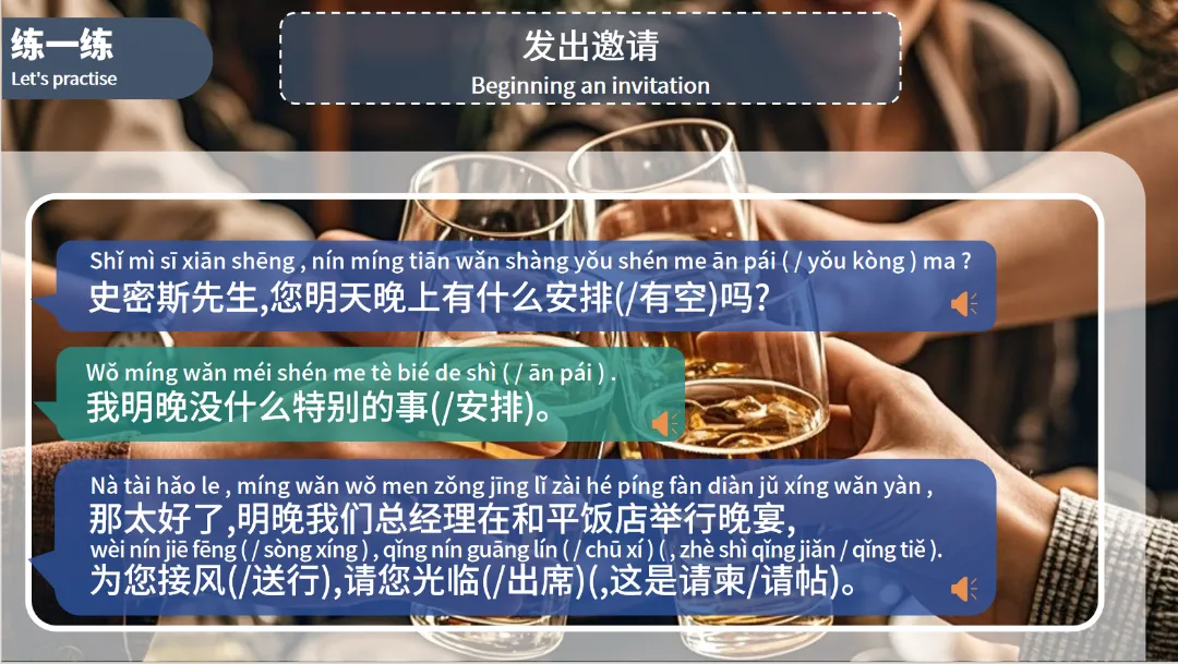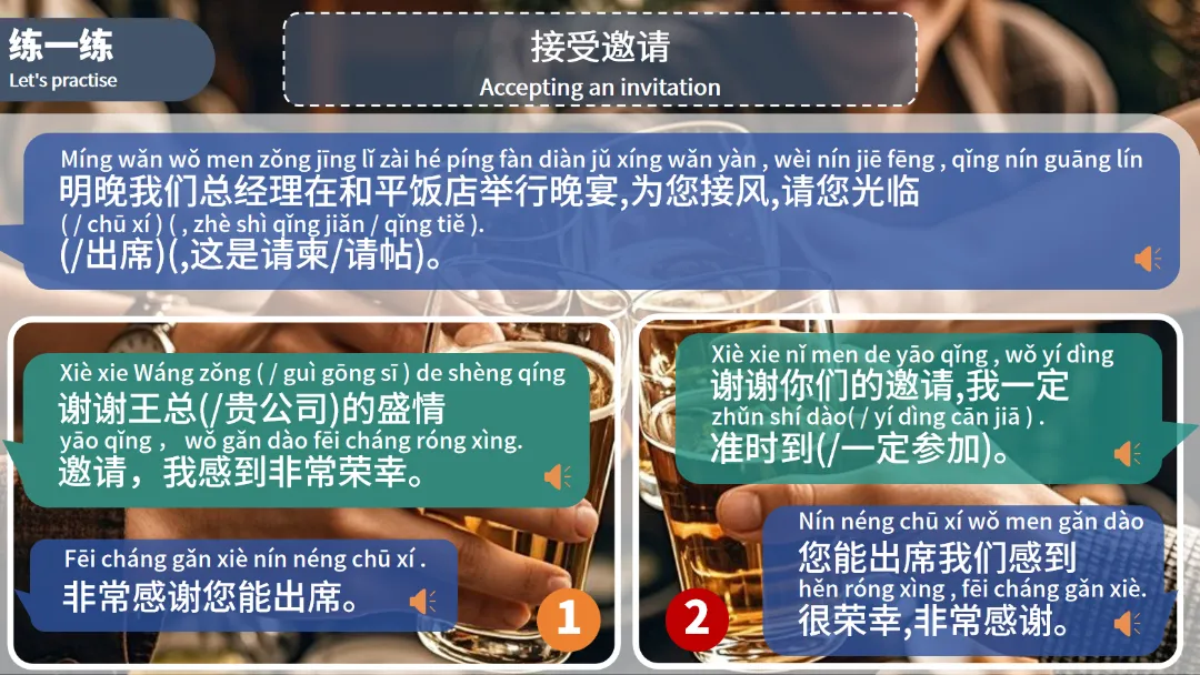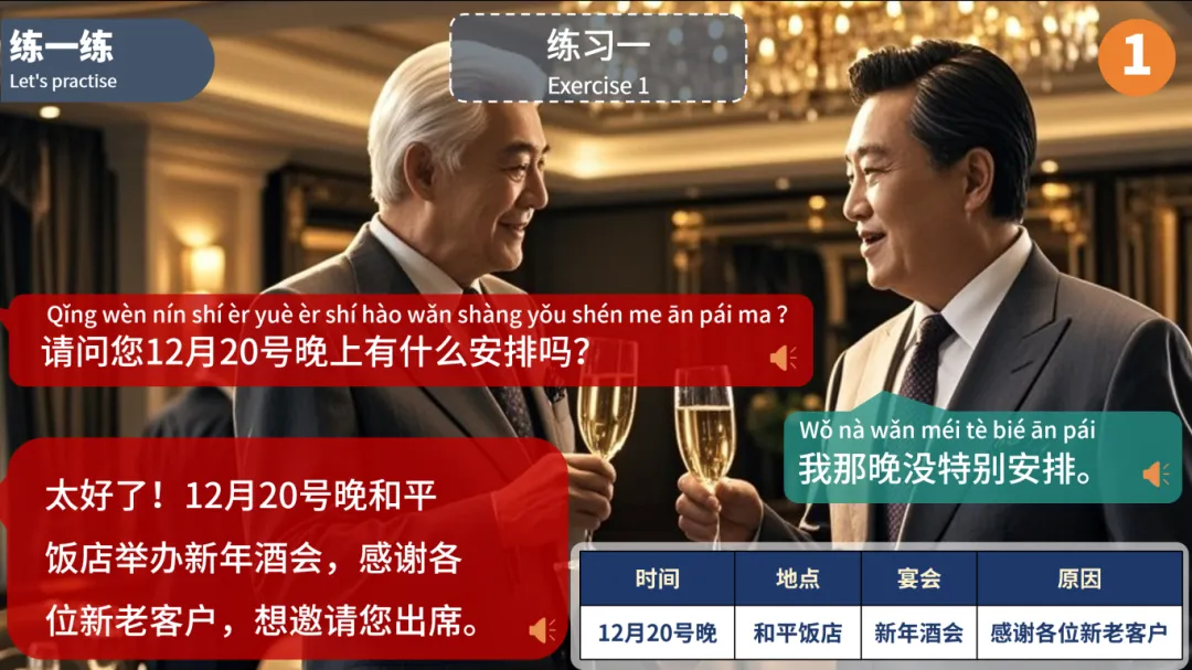 今天,我们就通过《新丝路商务汉语中级—为了大家的健康干杯》里的精彩内容,带大家解锁商务宴请的实用表达,让你在跨文化交流中更加从容自信。