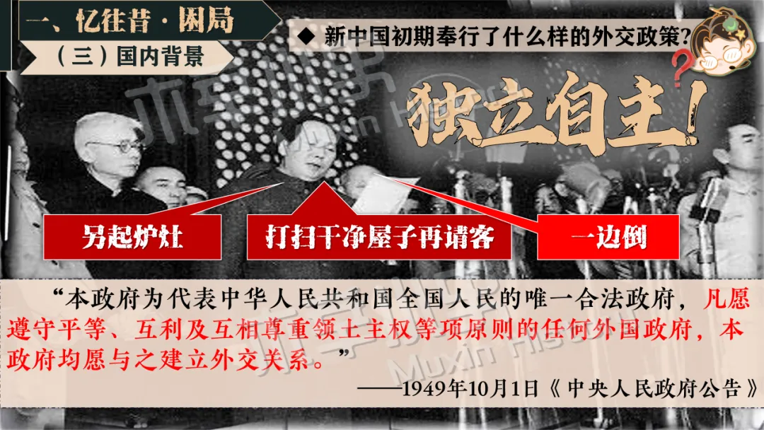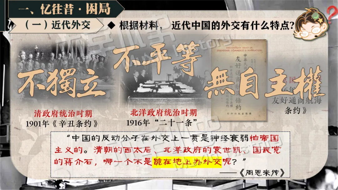 新中国的成立,结束了我国百年的屈辱外交,开启了外交事业的新篇章。从1901年清政府签订丧权辱国的《辛丑条约》,到2021年,中美高层战略对话,中国硬气地回怼“和中国说话注意你的态度”。我们始终坚持独立自主的和平外交政策,始终不渝走和平发展道路、奉行互利共赢的开放战略,坚定维护国际关系基本准则,维护国际公平正义。