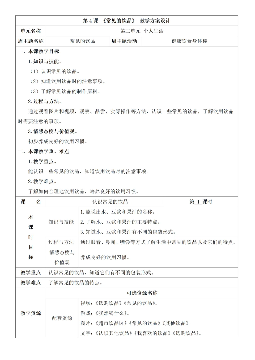 人教版《生活 适应》一年级下册教案,可下载编辑!