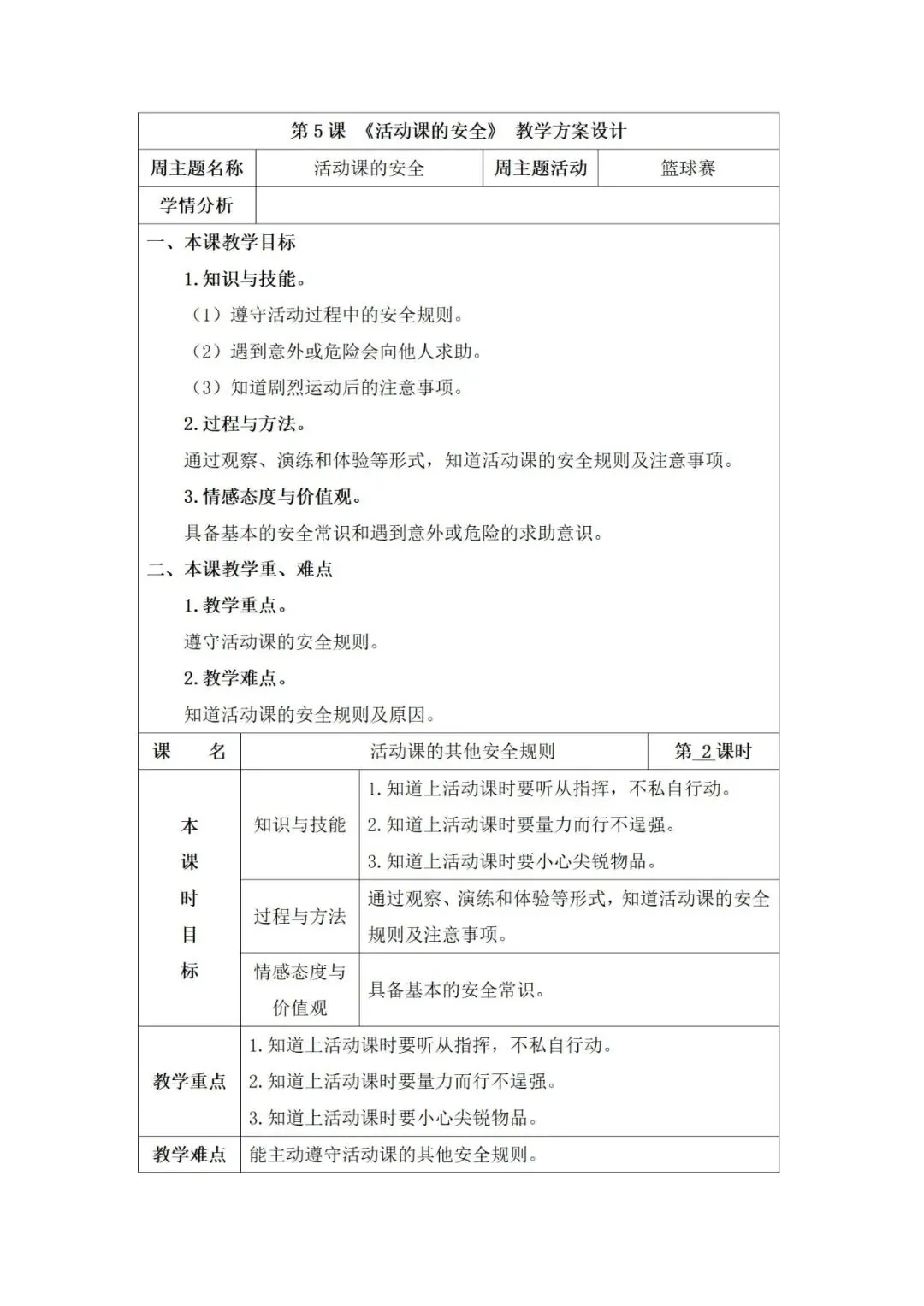 人教版《生活 适应》二年级下册教案,可下载编辑!