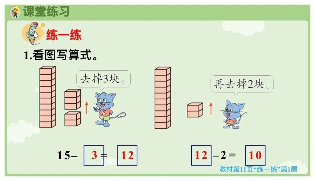 >26春冀教版一下数学课件第一单元《20以内的减法》第1课时《十几减几》,全册ppt都有