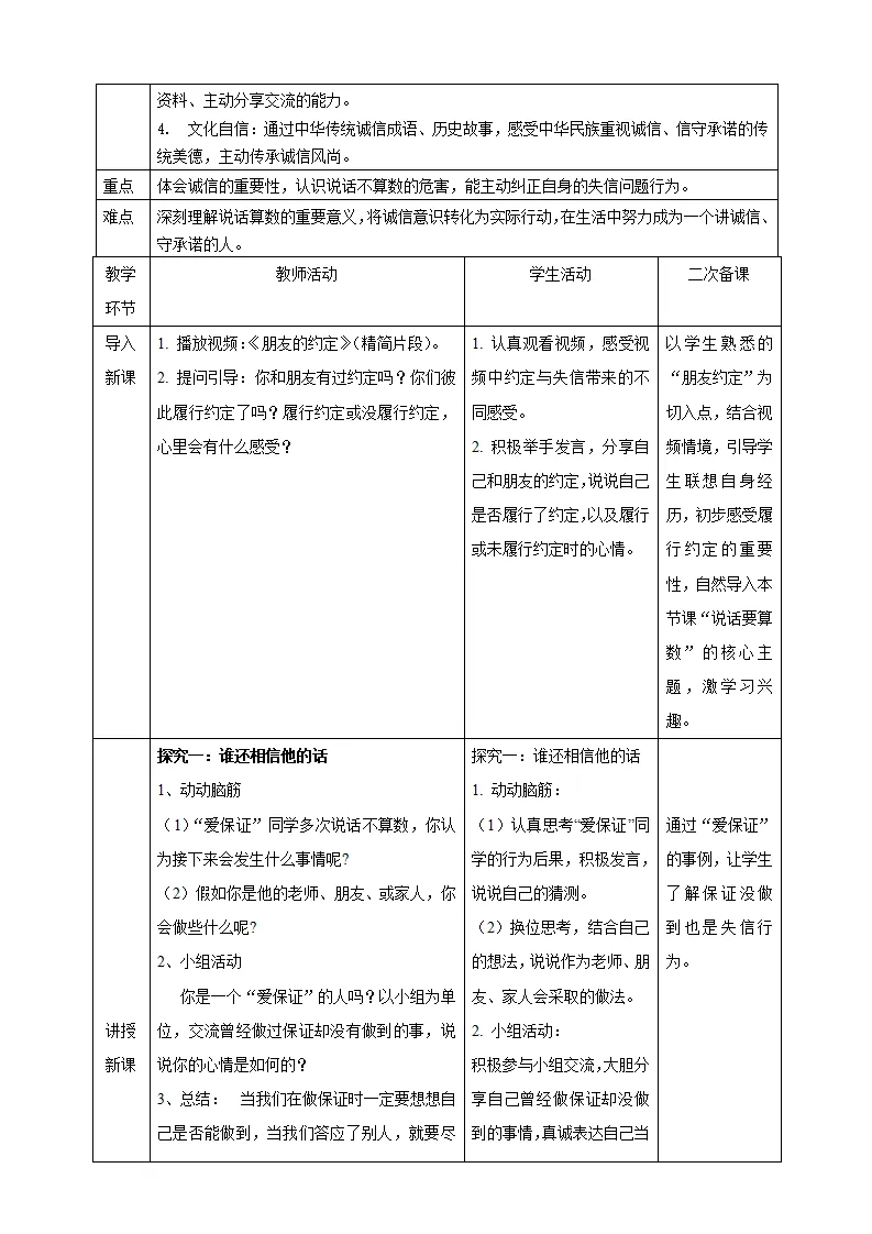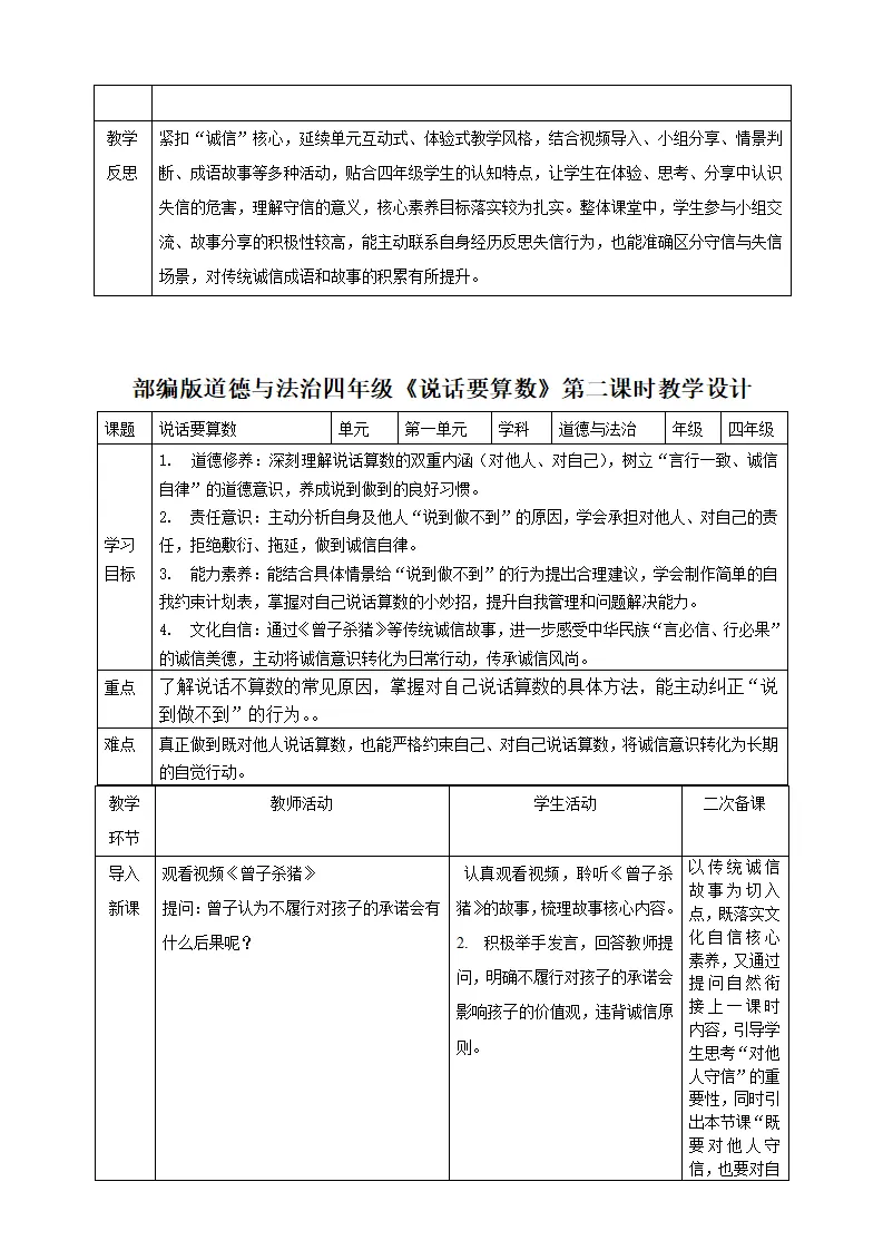 >26春新版 四下道法 核心素养表格式教案(含教师活动 学生活动 设计意图 板书设计 教学反思)