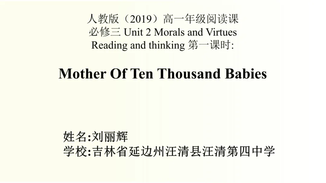 说课课件:人教版必修第三册 Unit 2 Reading and thinking 说课 (吉林 刘丽辉)