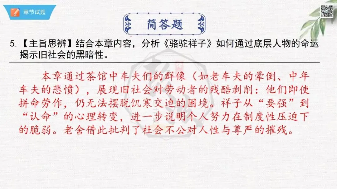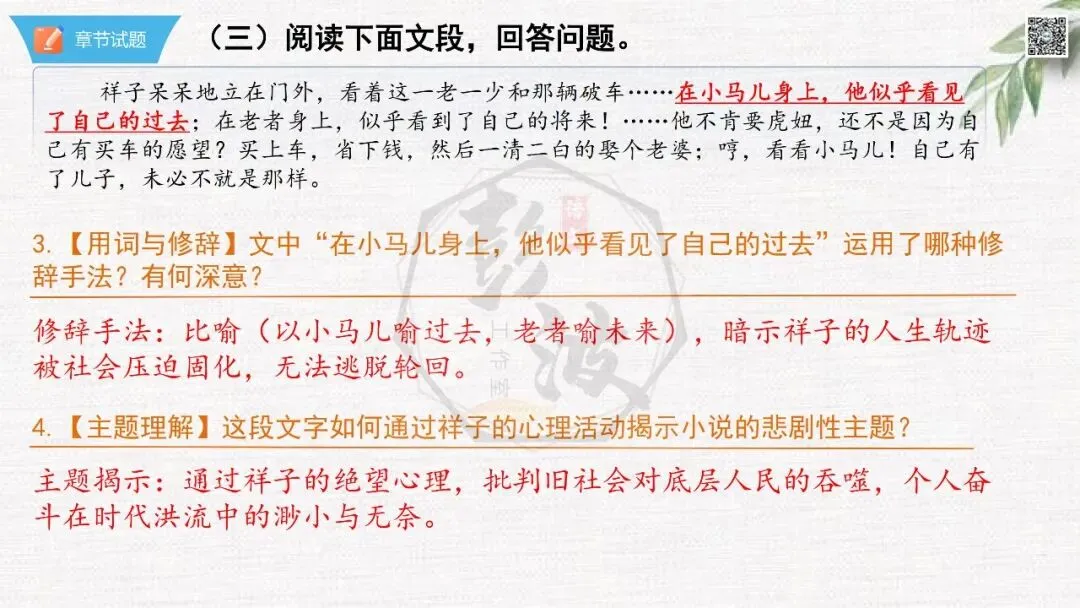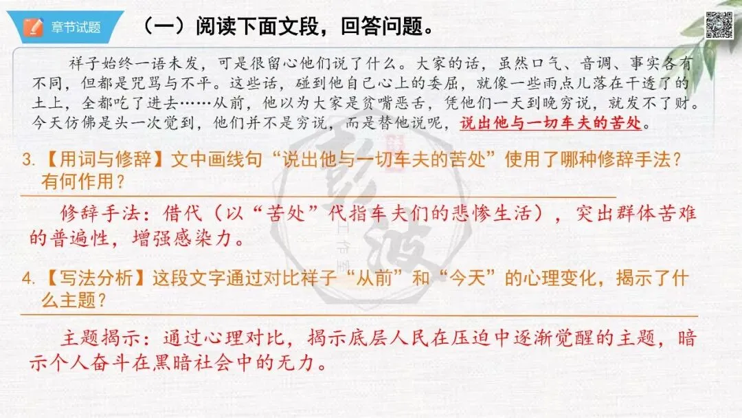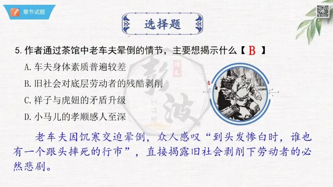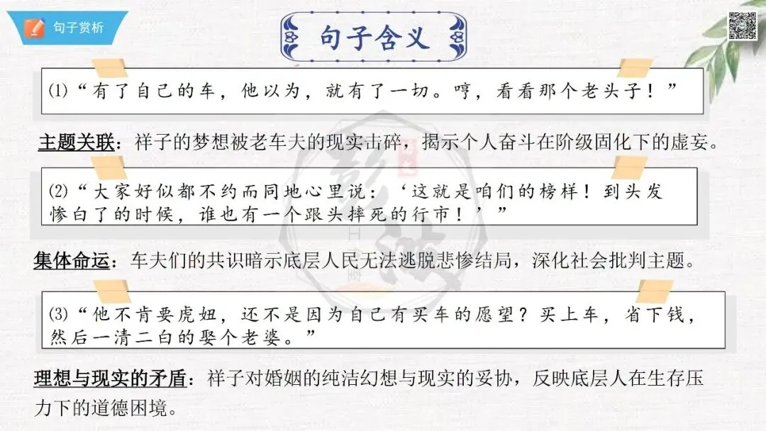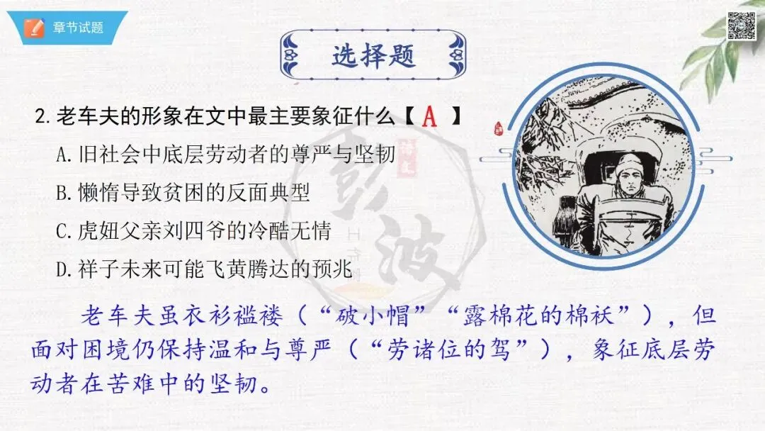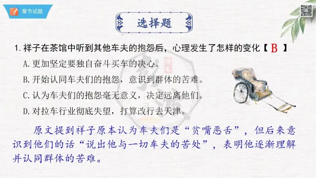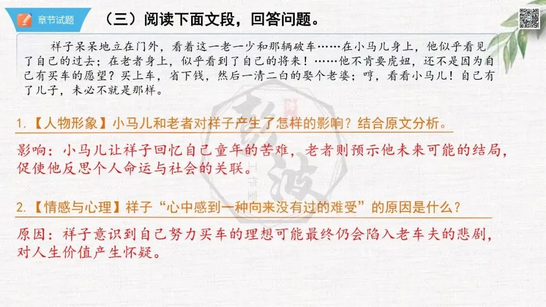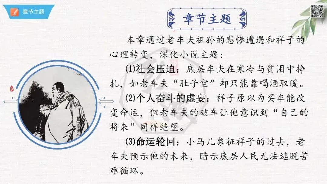 ◆02《骆驼祥子》章节课件24章-情节梳理+人物形象+语句赏析+章节试题(PPT)(65元)