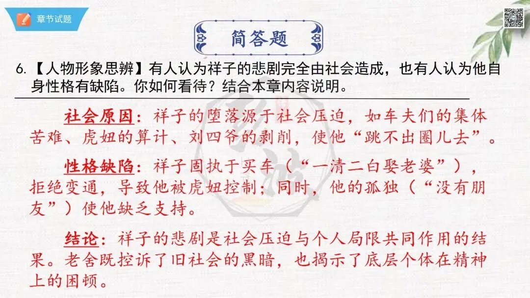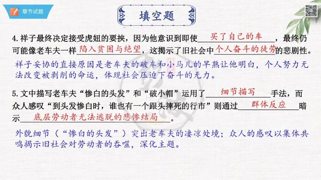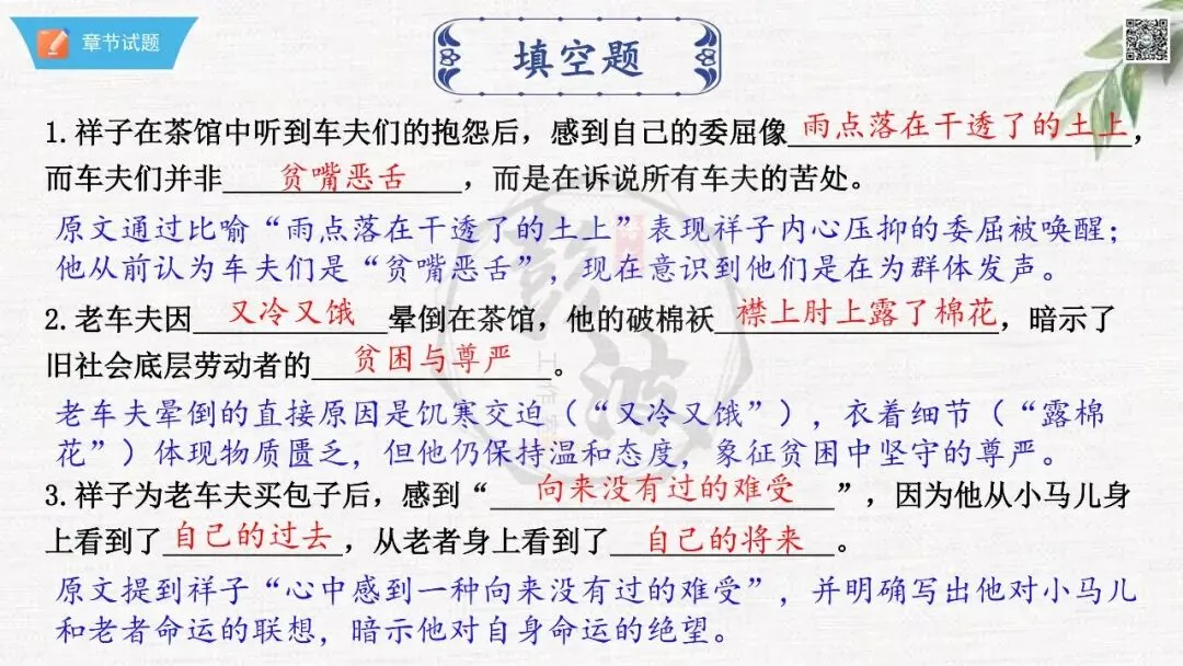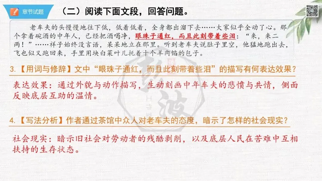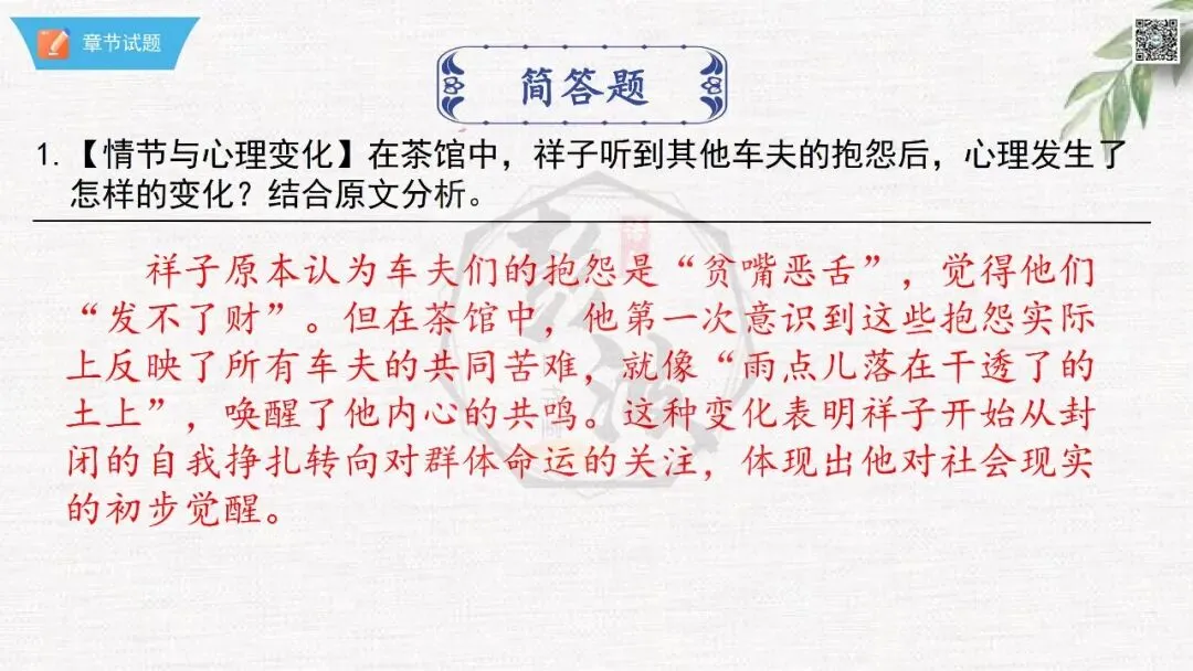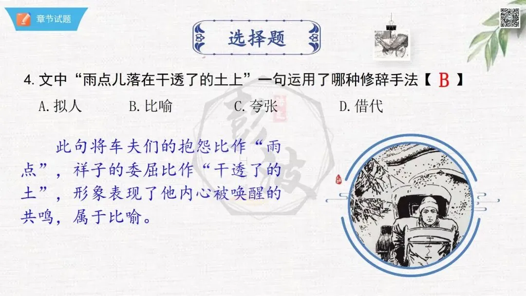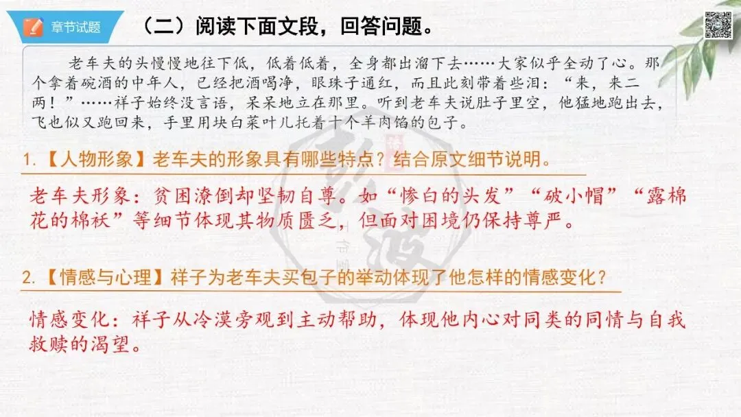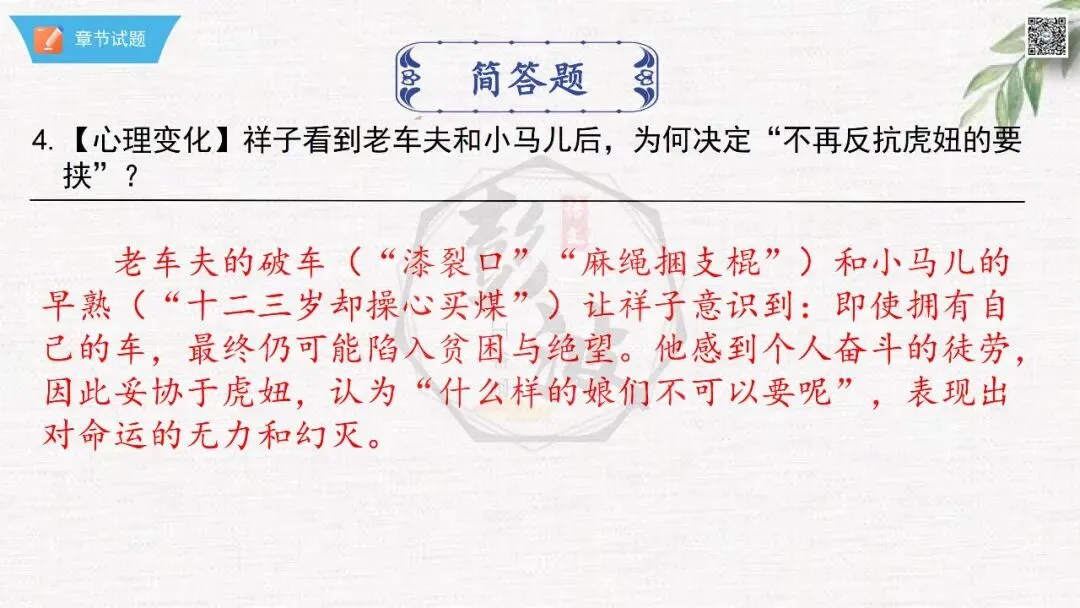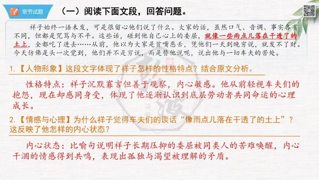 ◆02《骆驼祥子》章节课件24章-情节梳理+人物形象+语句赏析+章节试题(PPT)(65元)