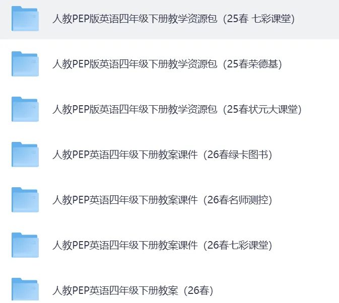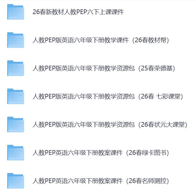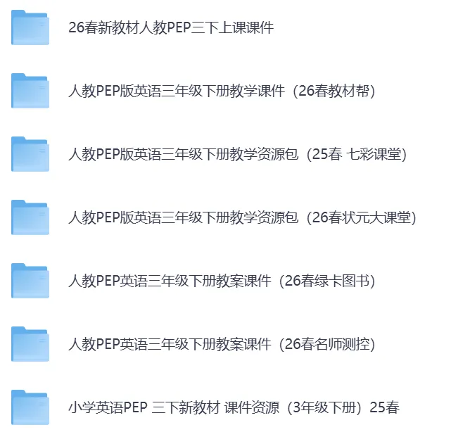 2026春最新人教PEP版英语3-6年级下册教案课件教学资源包(持续更新)·可下载。含教案、课件、音频等全套资料,同步最新教材,适配日常教学。老师备课、课堂教学、课后巩固都能用。26春新教材人教PEP三年级下册课件 教学资源包