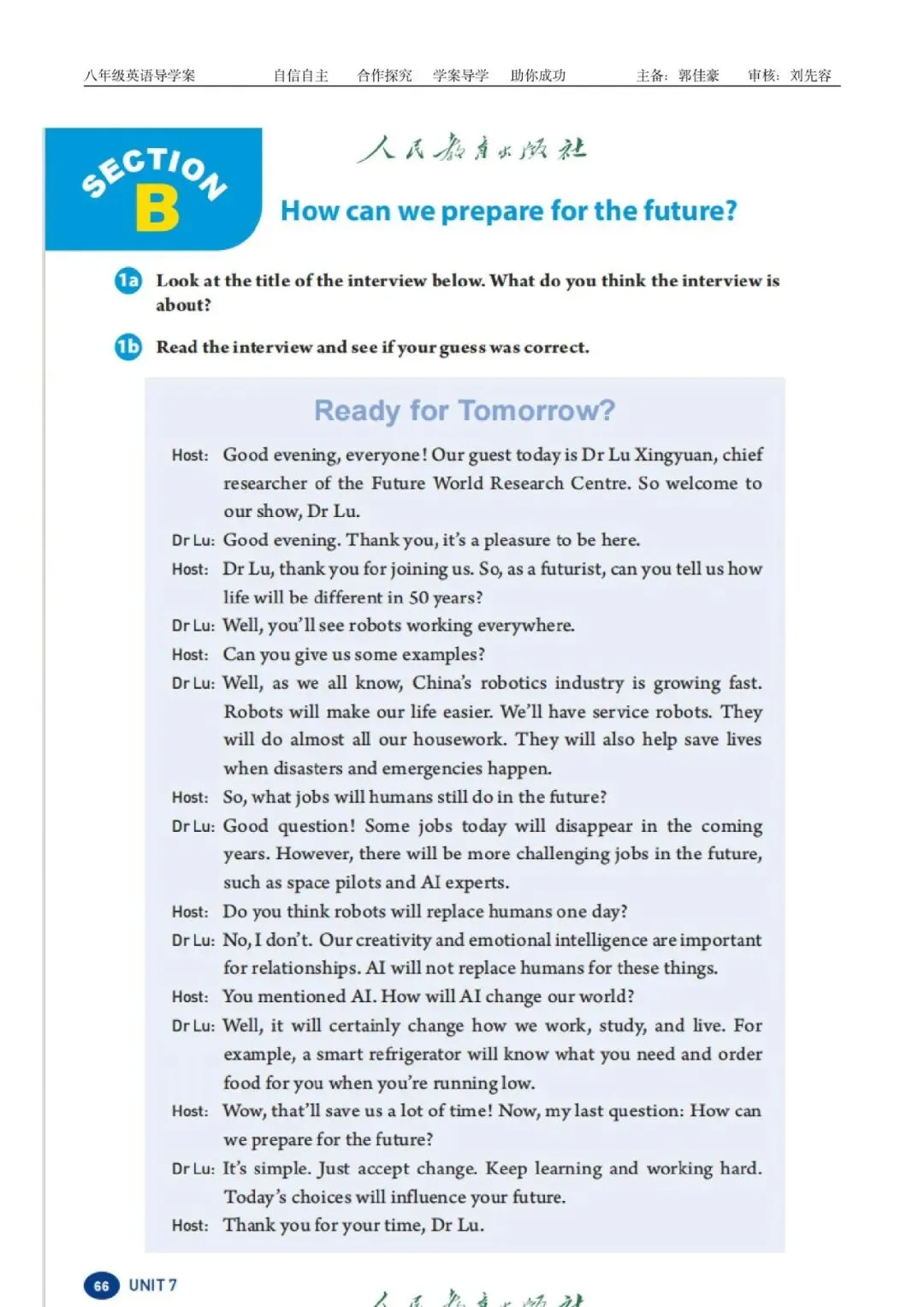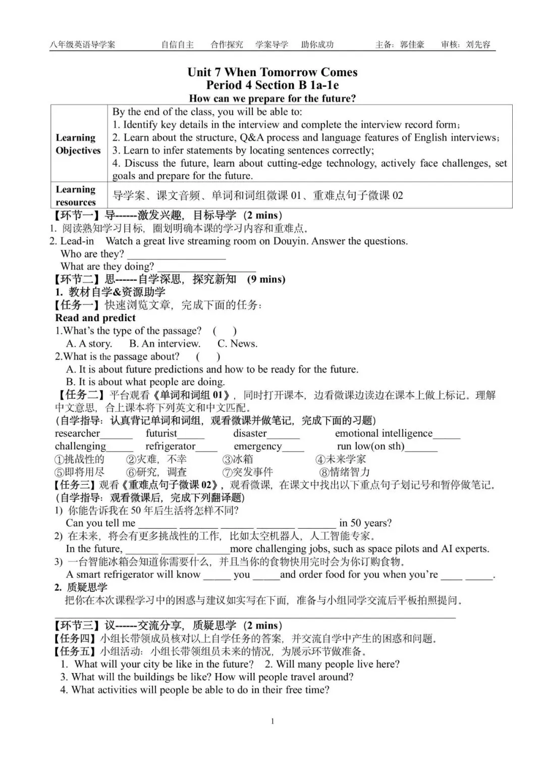 八上课件导学案分享 | U7 Section B 1a-1e
