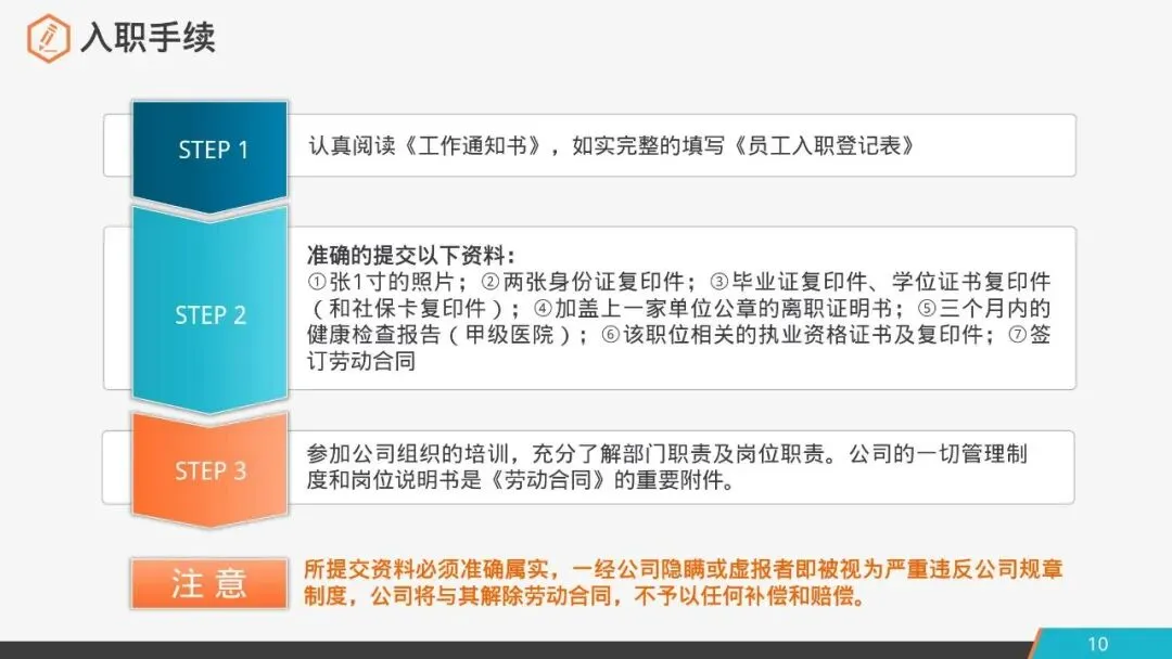 1.认真阅读《工作通知书》,如实完整的填写《员工入职登记表》