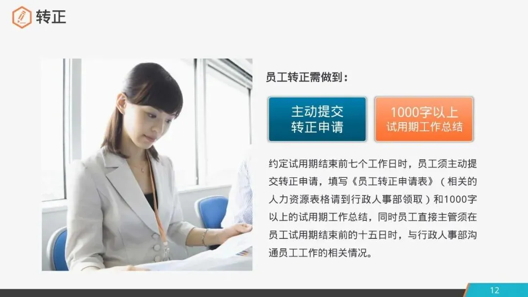员工转正需做到:主动提交转正申请,1000字以上试用期工作总结