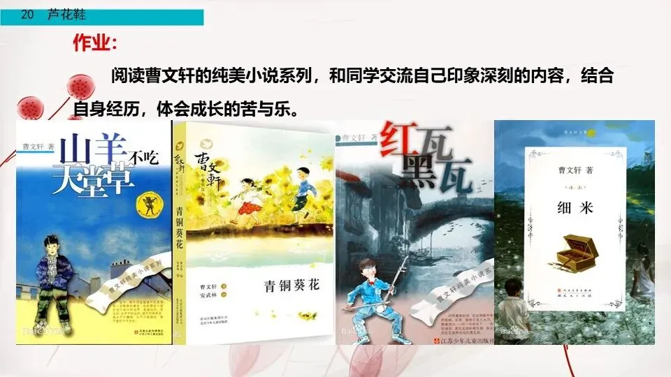 关注微信公众平台,在后台回复以下关键字领取课件:小学语文四年级下册《芦花鞋》课件