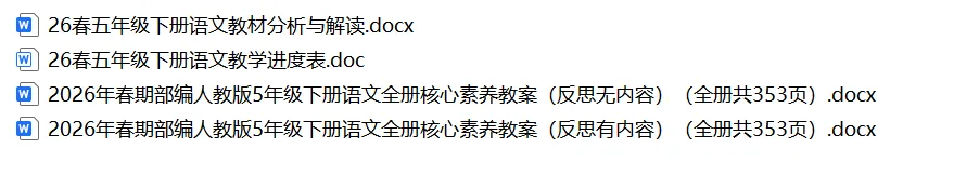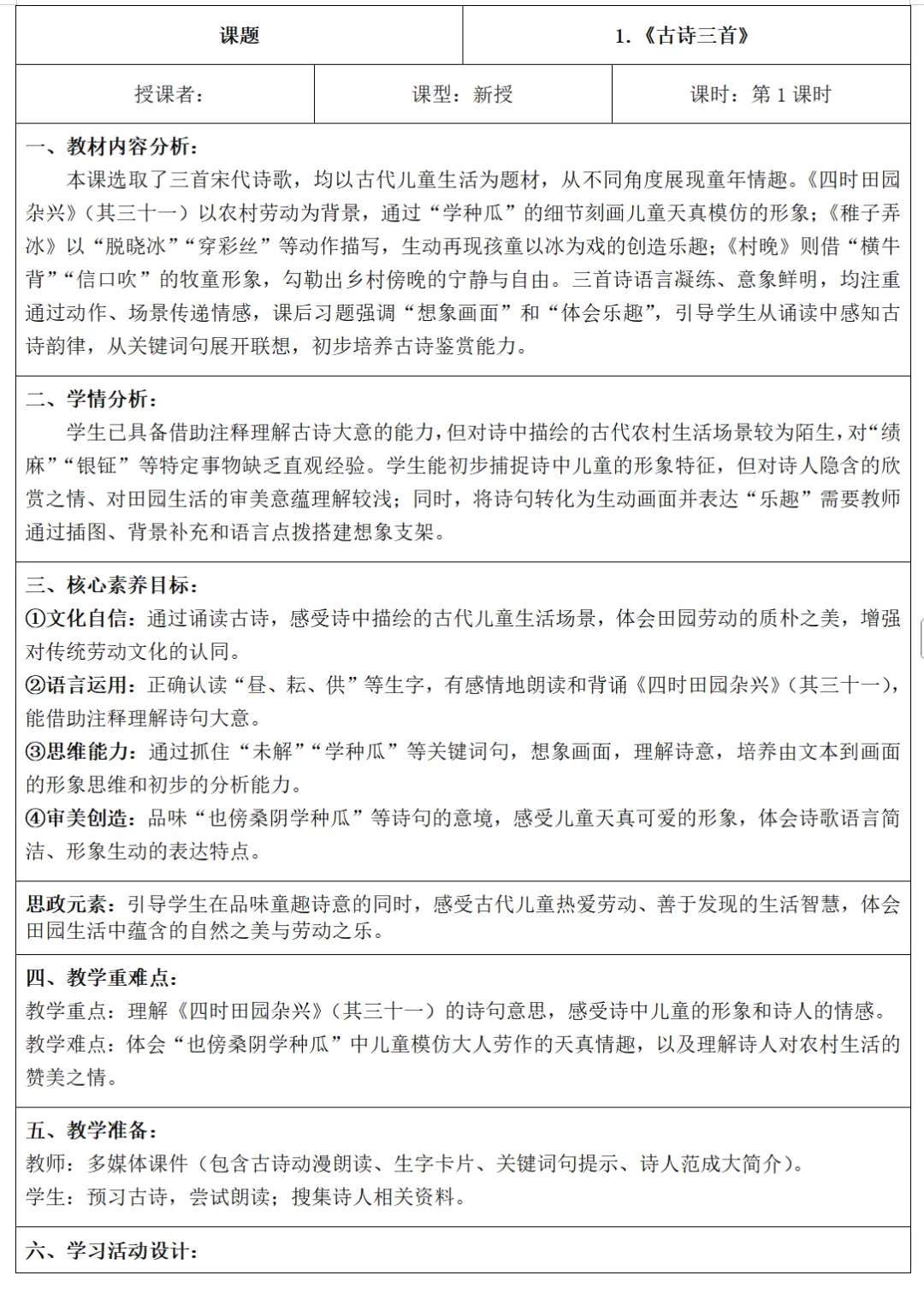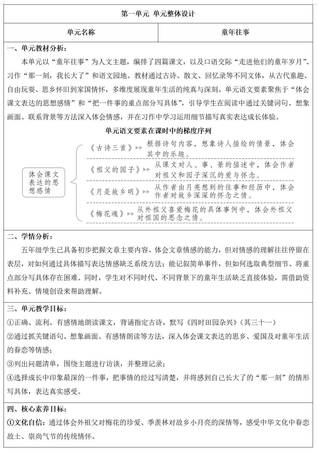 >26春新版人教版五年级下册语文核心素养教案(表格版)