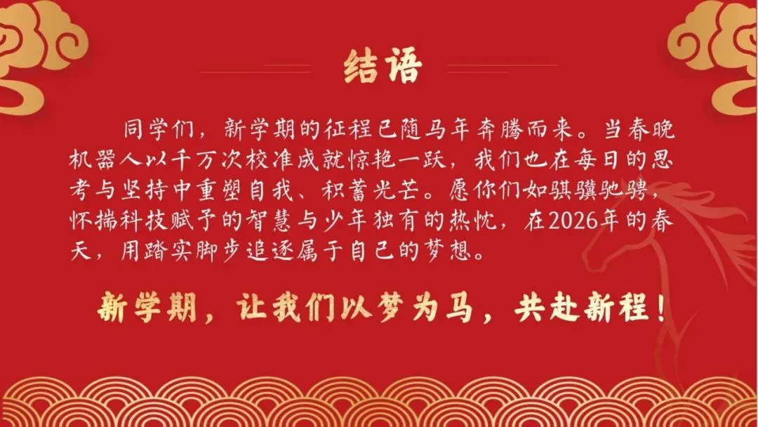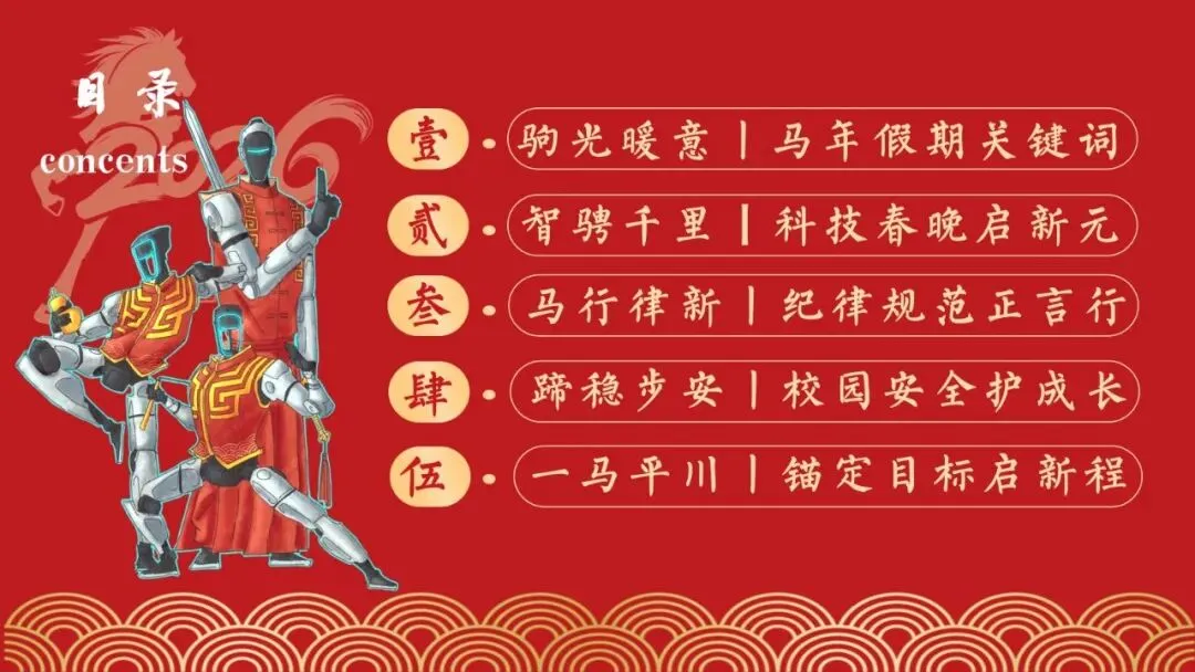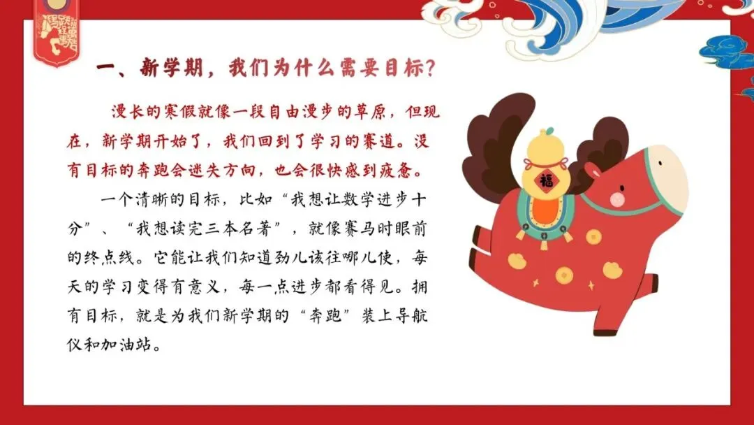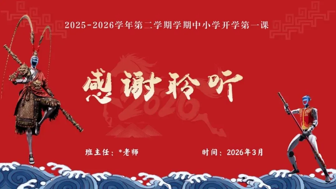 2026春最新版!新学期将至,这份《智能翩跹蕴国风,骐骥驰骋赴山海》开学第一课课件,带你回顾马年假期的温暖瞬间,解锁科技春晚的国潮魅力,重温校园纪律与安全准则,锚定新学期目标。在智能翩跹的国风里汲取力量,以骐骥驰骋之势奔赴山海,一起开启元气满满的新学期学习之旅!课件共36页幻灯片,文末有PPT网盘分享链接,直接下载可编辑。