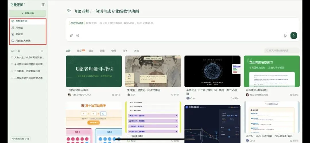 今天和大家分享一款能切实提升备课效率的教学工具——飞象老师。 飞象老师是国内首个教师专属 AI 专业工具,于 2025 年 12 月 1 日正式上线,网页端面向全国教师免费开放注册。 飞象老师的功能设计深度契合教育部《教师生成式人工智能应用指引(第一版)》要求,围绕 “将人工智能融入教育教学全要素、全过程” 的总体目标,聚焦 “学习变革、教学提质、育人进阶” 等六大场景,尤其响应 “支持游戏化 / 个性化学习”“优化教学设计与课件制作” 等具体指引,确保 AI 应用符合教育教学规律与学科规范。网址:https://www.feixianglaoshi.com/