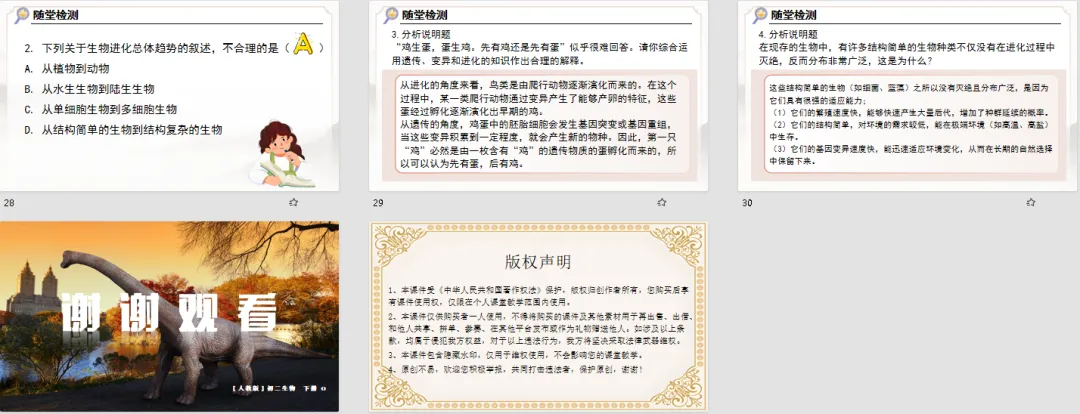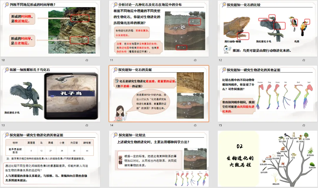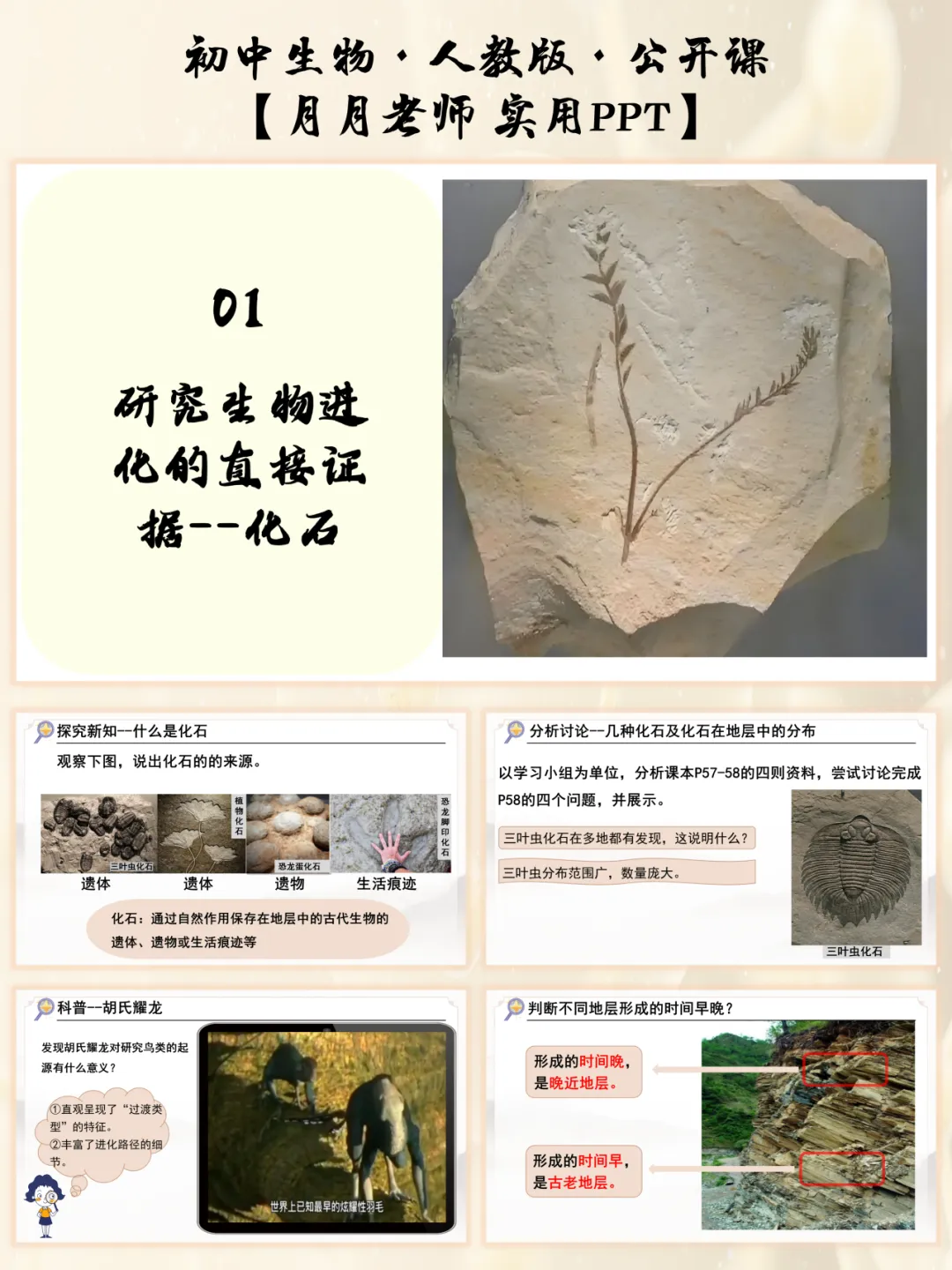从化石到同源器官,再到分子水平的证据,层层递进,让学生明白 “生物进化的结论不是猜想,而是基于多重证据的科学推断”,既夯实了知识基础,又培养了证据意识。