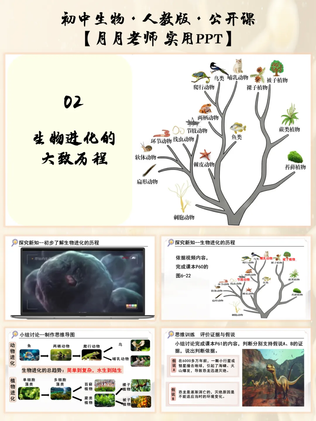 八年级生物课干货来啦~ 今天分享《生物进化的历程》趣味教学方案,不枯燥不灌输,用实验探究 + 生活联动,让学生主动解锁知识点!