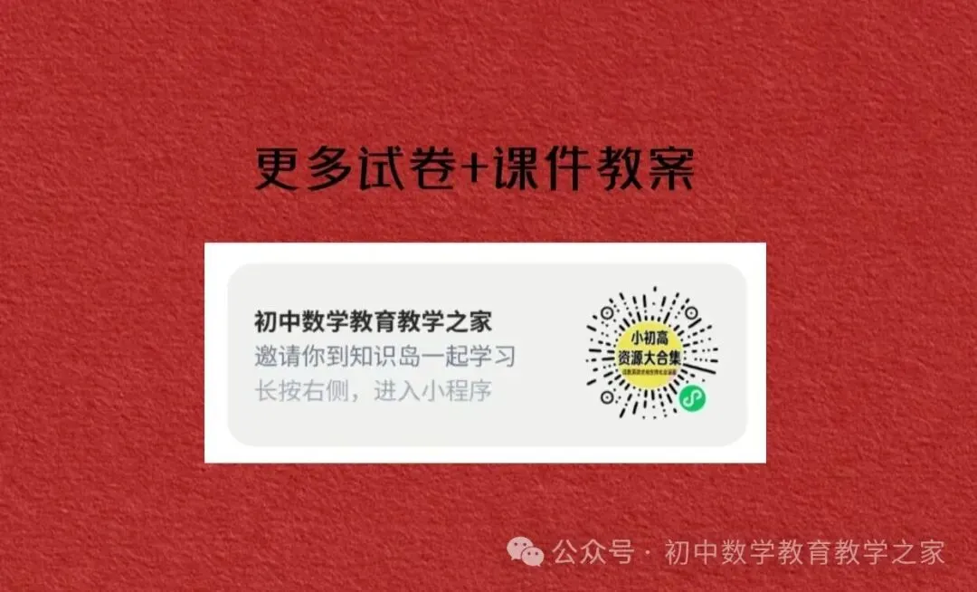 『初中数学教育教学之家』微信公进入公众号,进入聊天界面,点击左下角的键盘图标,在聊天界面输入更多资料订阅领取:长按识别下方图片订阅知识库,每日分享中小学资源,不用下载软件,提问后会人工智能回复。