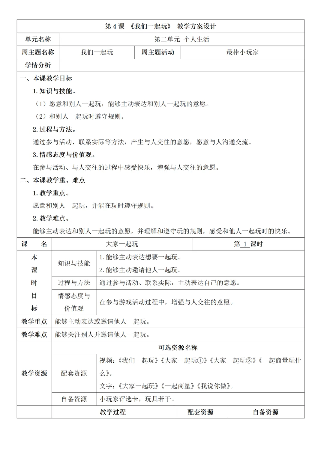 人教版《生活 适应》三年级下册教案,可下载编辑!
