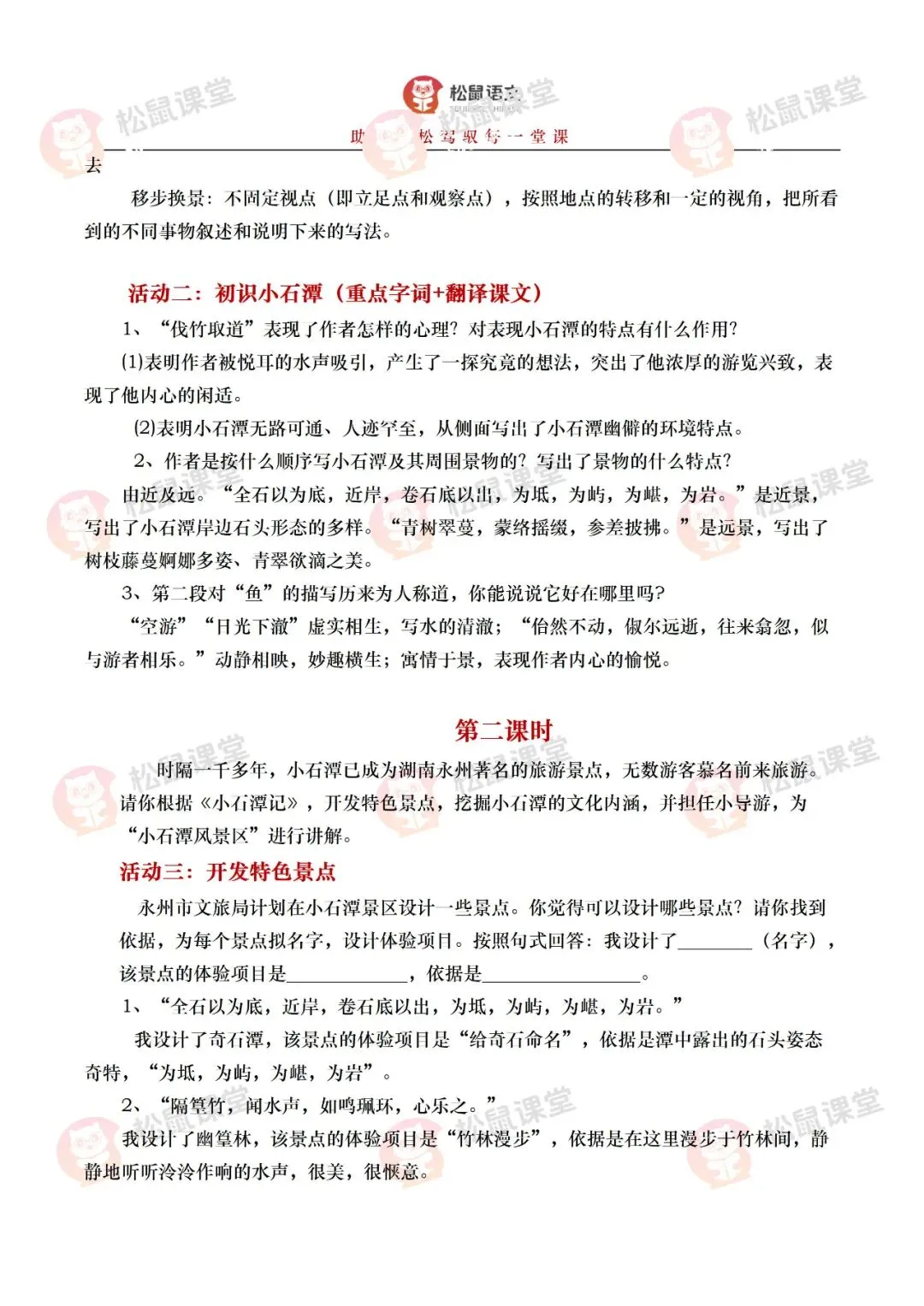 ✪任务二:初识小石潭(重点字词+翻译课文)