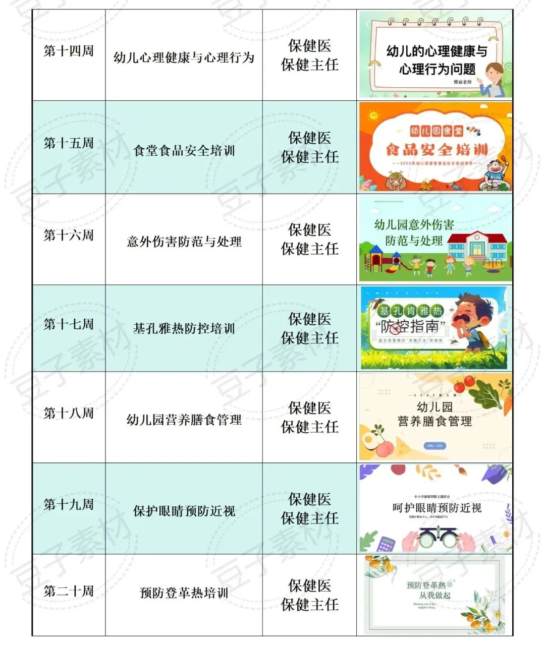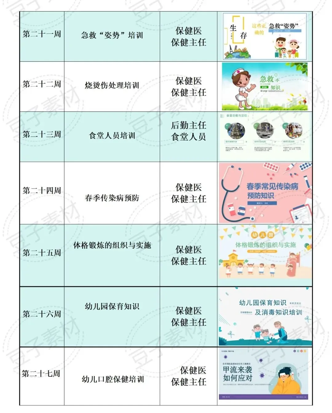 >2026年幼儿园春季卫生保健培训PPT课件+计划表(25周)